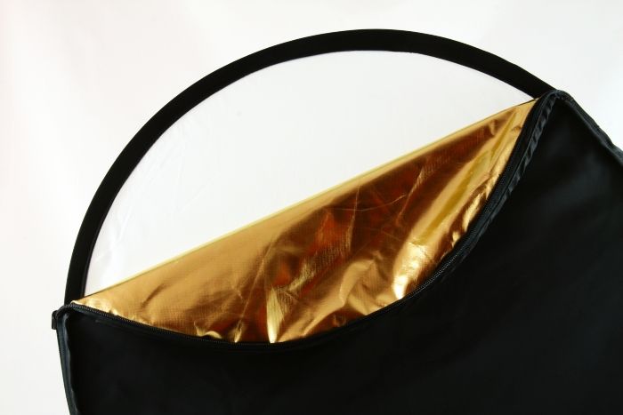 3. Płaszcz złoty - powierzchnia dająca ciepłe światło, odbijając strumień światła od płaszcza złotego uzyskujemy oświetlenie o ciepłych barwach, podobnie, jak w słoneczny dzień. Powierzchnia ocieplająca kadr. Doskonała przy robieniu portretów.