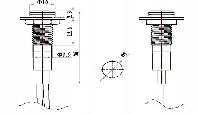 4. Diodę należy zamontować tak, aby była widoczna dla kierowcy nawet w ciągu dnia, ale nie oślepiała po zmroku. W tym celu konieczne jest wywiercenie otworu, na przykład, w maskownicy lusterka. Ważne jest, aby dobrać odpowiednie wiertło do grubości korpusu kontrolki.