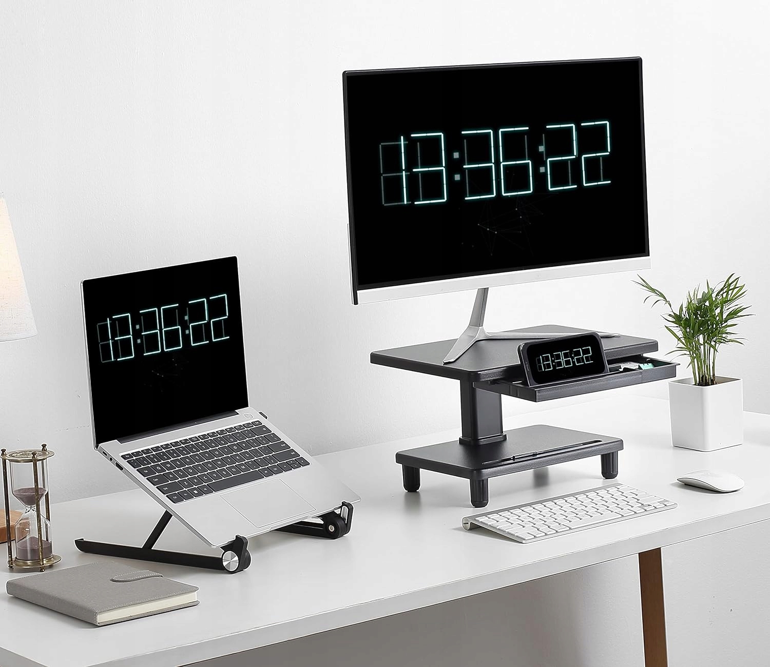 Gdy nie jest używany, pod stojakiem na komputer można umieścić mysz lub klawiaturę, co pomaga utrzymać przestrzeń roboczą w czystości i porządku oraz idealnie nadaje się do organizacji biurka.