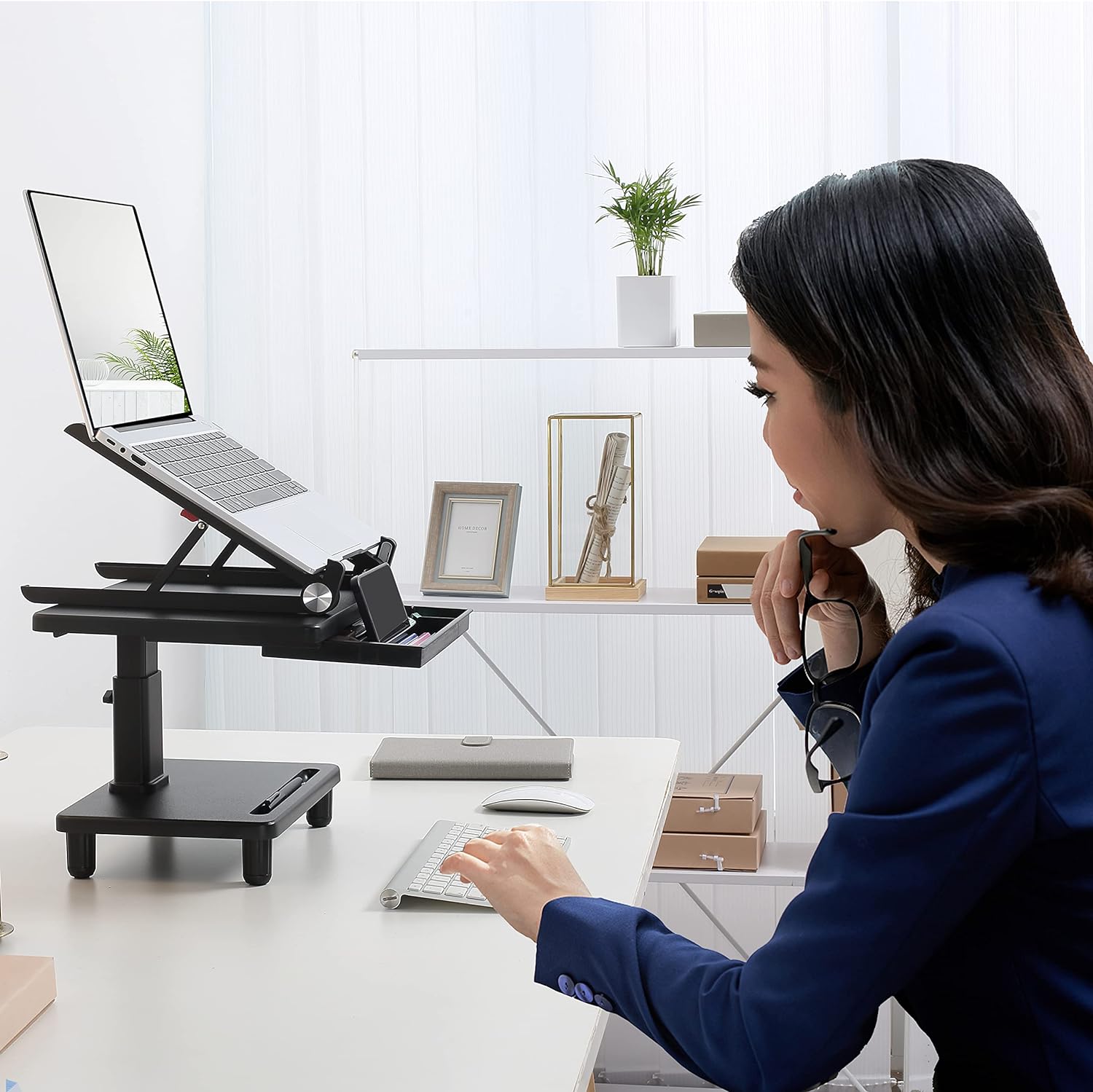 Podstawka pod laptopa ma dużą szufladę na biurko, która dodaje cenne dodatkowe miejsce do pracy w biurze.