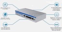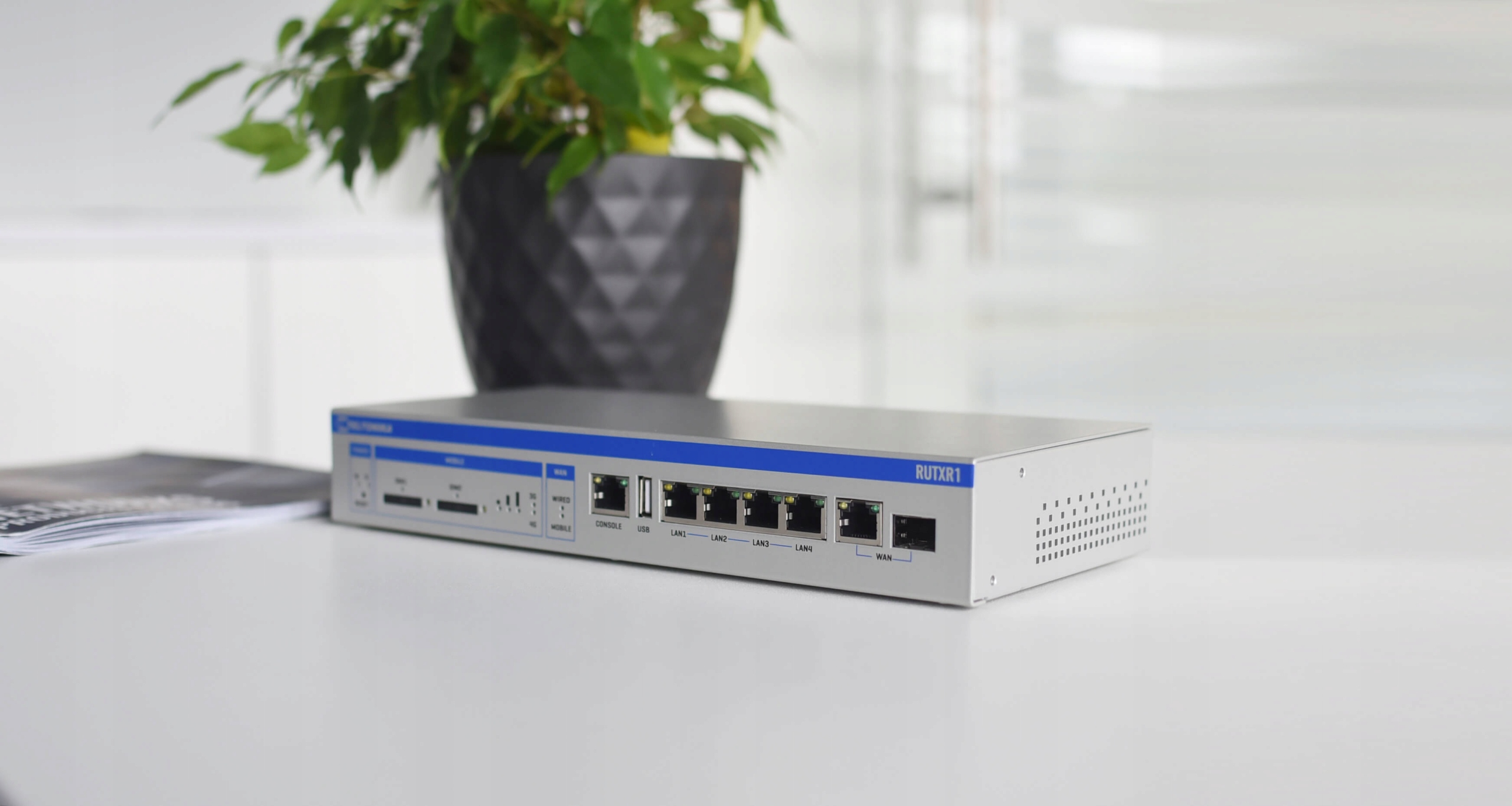 Możliwość podłączenia dwóch kart SIM z automatycznym przełączaniem pomiędzy kartami oraz łączność z prędkością do 300 Mb/s, wyposażenie w port USB, dwuzakresowe WiFi 5 z transferem danych do 867 Mb/s, 1 port SFP oraz 5 dedykowanych portów Ethernet czynią z RUTRX1 wyjątkowy produkt w segmencie korporacyjnych routerów mobilnych.