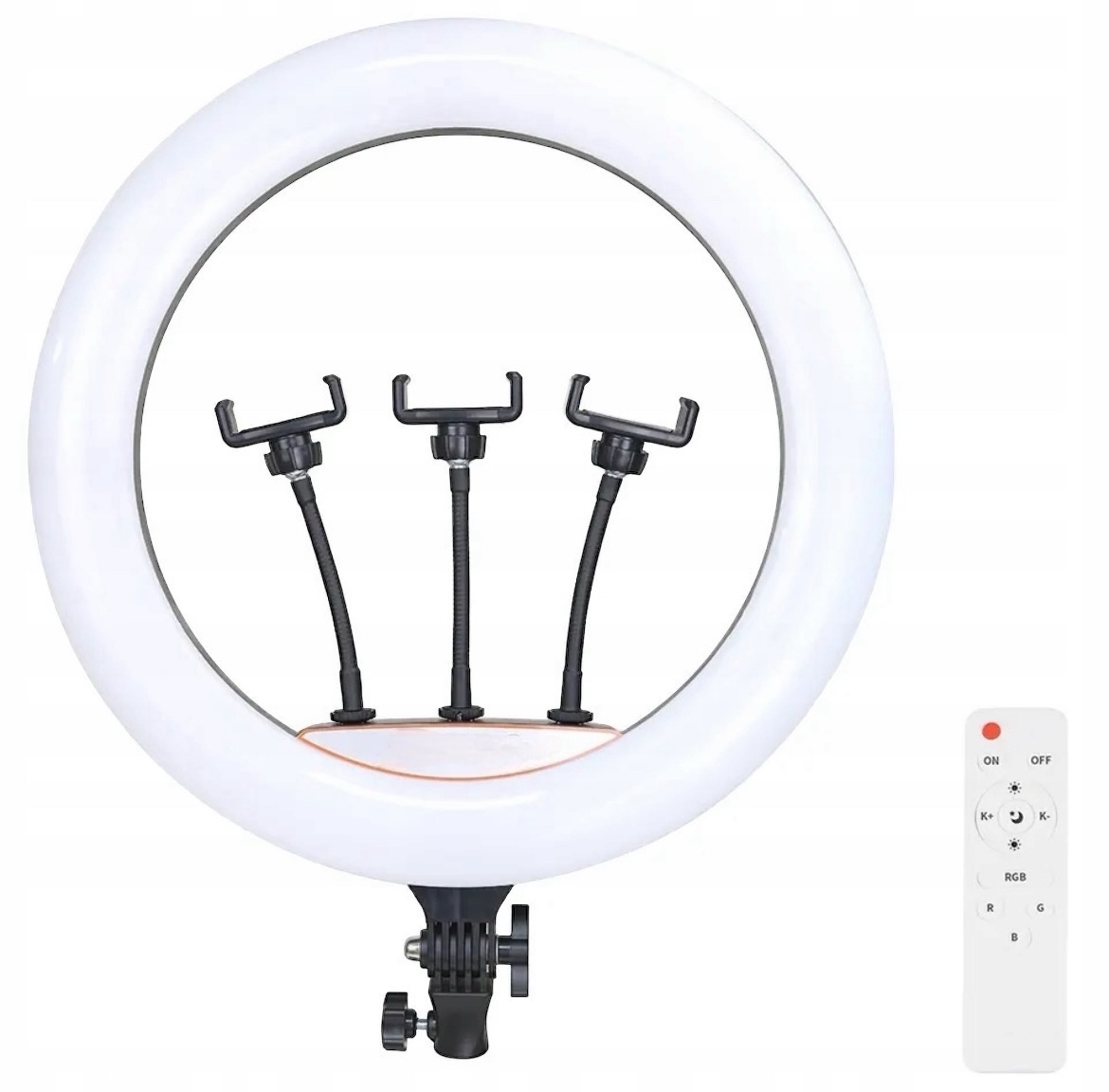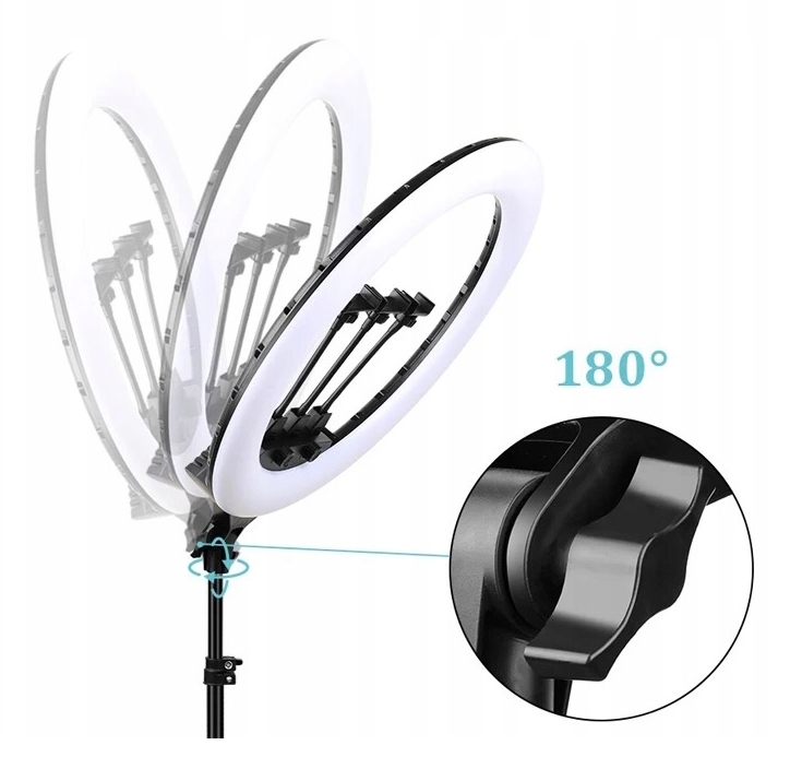 Największa lampa oświetlająca LED RING to kompletne narzędzie do pracy przy tworzeniu materiału do mediów społecznościowych, streamingu, w fotografii czy kosmetyce.