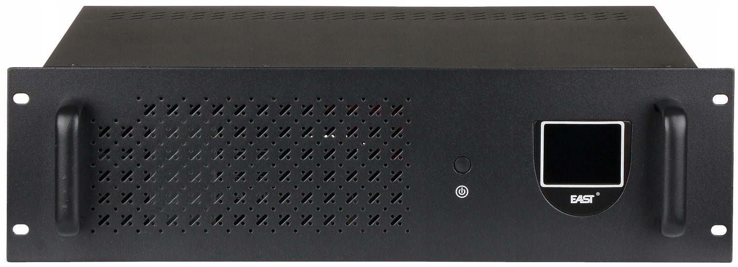 Moc czynna: 1200 W Moc pozorna: 2000 VA Napięcie wejściowe: 230 V AC ± 25 % Częstotliwość wejściowa: 50 / 60 Hz (auto wykrywanie) Napięcie wyjściowe: 230 V AC ± 10 % (aproksymowana sinusoida) Częstotliwość wyjściowa: 50 / 60 Hz ± 1 % Regulacja napięcia: Regulacja częstotliwości: Czas przełączenia: 2 ... 7 ms (typowy), max. 10 ms Czas ładowania (do poziomu 90%): ≤ 8 godz. Akumulator: 2 szt. - 12V/9Ah Szacunkowy czas pracy na akumulatorze: 62 minuty @ 100 W, 31 minut @ 200 W, 16 minut @ 300 W, 9.5 minuty @ 500 W Liczba wyjść: 2 szt. CEE 7/3 (Schuko) Oprogramowanie zarządzające: UPSmart (Windows 95/98/2000/XP/Vista/7/8/10, Linux) Zabezpieczenia: Bezpiecznik topikowy Przeciwprzepięciowe Ochrona przeciwprzeciążeniowa Filtr Ethernet Sygnalizacja stanu pracy: Wyświetlacz LCD: poziom napięcia we/wy, częstotliwość wejścia, pojemność akumulatora, obciążenie, alarm, Sygnalizacja dźwiękowa Wybrane cechy: Automatyczny restart po przywróceniu zasilania sieciowego Automatyczny regulator napięcia AVR Funkcja "zimnego startu" Współpraca z agregatami prądotwórczymi Zdalne zarządzanie - aplikacja UPSmart w zestawie Wbudowany filtr EMI, RFI Doskonałe mikroprocesorowe sterowanie gwarantujące wysoką niezawodność funkcja autodiagnostyki Interfejs USB Przeznaczenie: systemy monitoringu centra magazynowania danych sieć, serwery, stacje robocze wyposażenie przemysłowe Typ obudowy: Rack 19" Temperatura pracy / wilgotność względna: 0 °C ... 40 °C / 0 ... 90 % Waga: 14.8 kg Wymiary: 440 x 310 x 132 mm, RACK 19", 3U Producent / Marka: EAST Gwarancja: 2 lata
