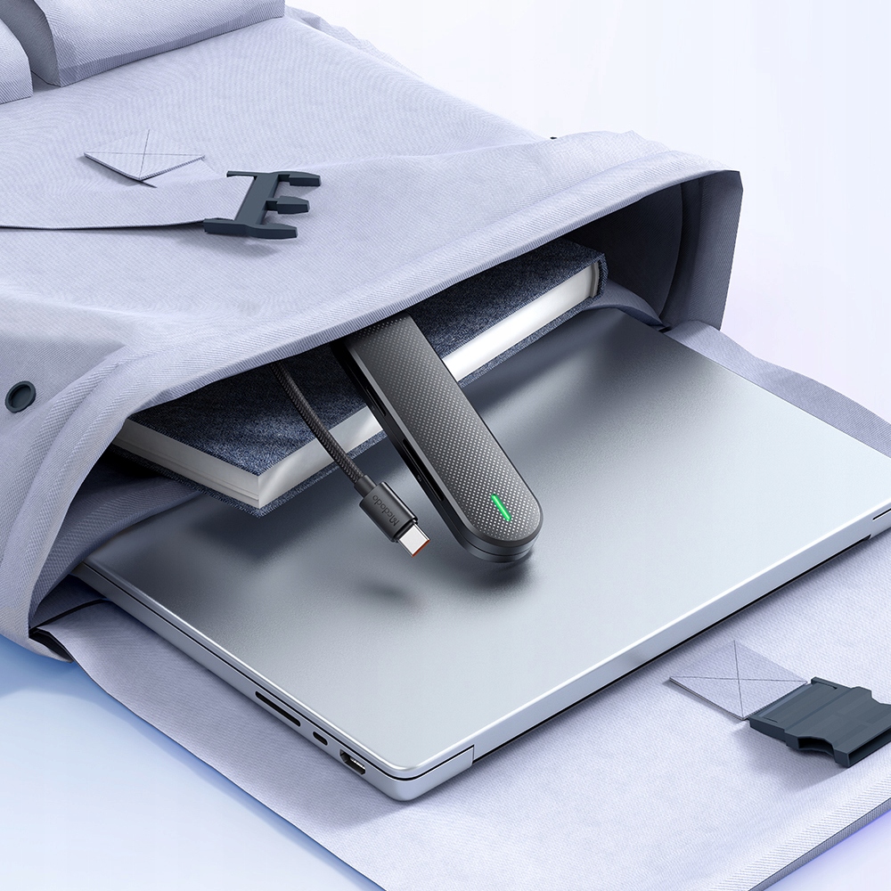 Minimalistyczny Design i skompresowana konstrukcja zamieni Huba Mcdodo w doskonałego towarzysza podróży. Niewielkie wymiary i lekka konstrukcja pozwolą Ci go wrzucić do dowolnej torby na laptopa i rozszerzyć funkcjonalności Twojego Laptopa w dowolnym miejscu na świecie.
