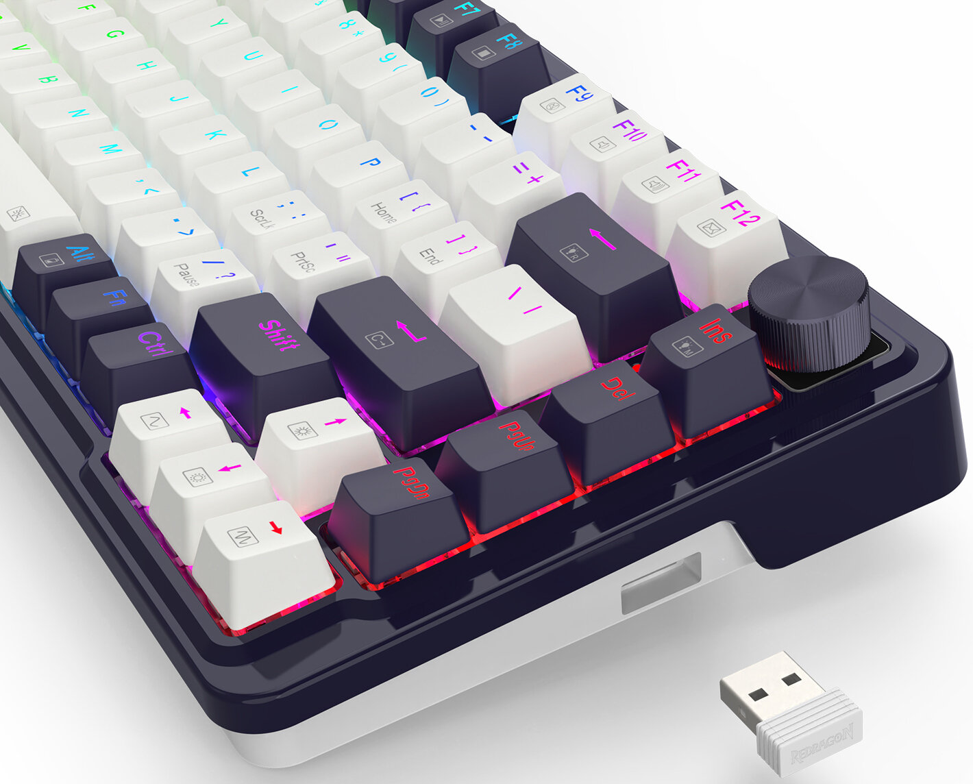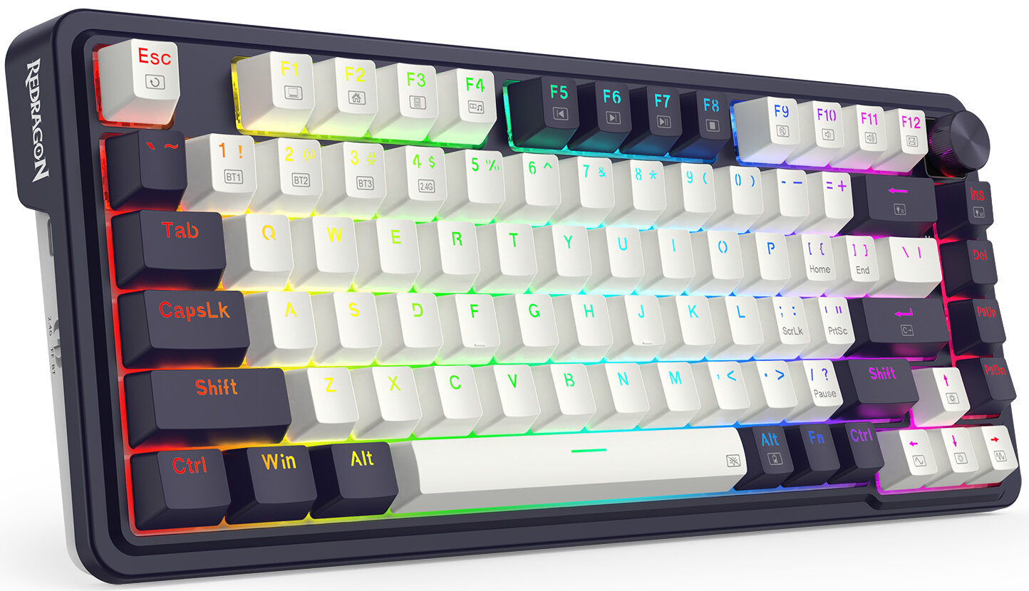 REDRAGON Ucal K673 Pro to klawiatura gamingowa formatu 75%, oferująca wiele funkcji do samodzielnego dostosowania. Łączy się z komputerem na 3 sposoby, przewodowo za pośrednictwem przewodu USB-A/USB-C oraz bezprzewodowo w trybie 2.4 GHz albo Bluetooth. Klawiatura dzięki funkcji HOTSWAP pozwala także na łatwe wyjęcie oraz wymianę przełączników na inne 3/5 pinowe.