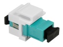 Konstrukcja łącznika umożliwia proste (przez zatrzask) mocowanie w uchwytach typu KEYSTONE. Uchwyty takie stosowane są osprzęcie teleinformatycznym (np. puszki, ramki, adaptery, panele RACK). Przykładowe rozwiązania puszek, ramek, adapterów i paneli z wpiętymi złączami typu KEYSTONE prezentujemy na poniższych przykładach: