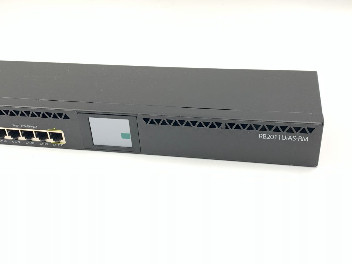 MikroTik RouterBoard 2011UiAS-RM jest przystosowany do montażu w szafach RACK. Posiada pięć portów Gigabit LAN oraz pięć portów Fast Ethernet LAN, posiada również port szeregowy RJ45, port USB, gniazdo SFP (moduł SFP nie jest zawarty w zestawie!) i więcej pamięci RAM (128 MB zamiast 64 MB). Posiada licencję RouterOS level5 i ekran dotykowy LCD do konfiguracji. Wyposażony jest w procesor AR9344 o taktowaniu 600 MHz.