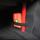 Zestaw mocowany jest do wykładziny bagażnika za pomocą wytrzymałego uchwytu z rzepem. Dzięki niemu w szybki i łatwy sposób zabezpieczymy przed przemieszczeniem gaśnicę i trójkąt. Zastosowane materiały umożliwiają montaż w dowolnym miejscu na tapicerce bez konieczności wiercenia.