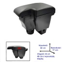 ✅ Zintegrowane porty USB i Podświetlenie LED: Podłokietnik posiada z przodu gniazda USB, dzięki którym można ładować 2 urządzenia na raz (smartfony, tablety itp.). Aby je zasilić należy podłączyć pierwsze gniazdo kablem z fabrycznym gniazdem USB lub z ładowaką do gniazda zapalniczki.