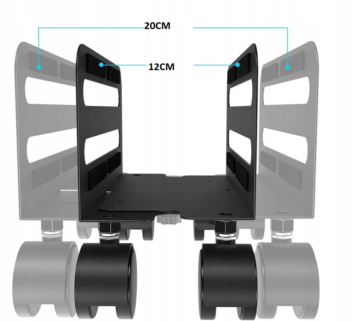 Dzięki regulacji szerokości w zakresie od 12cm do 20cm, wózek można dostosować do większości komputerów.
