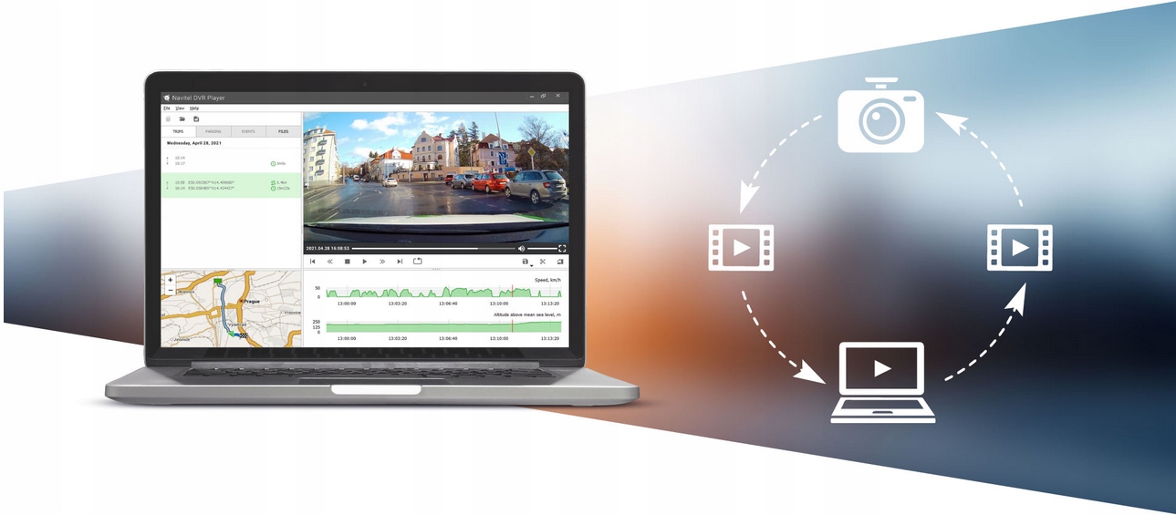 Navitel DVR Player делает его еще проще управление записанными видео и дорожками. Теперь каждый пользователь может на экране своего компьютера редактировать кадры, сохранять записи в удобном формате файлов, проверять местоположение автомобиля в время записи файла, ускорить воспроизведение видео (при необходимости) и фрагменты записи в петлях, которые требуют особого внимания.