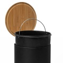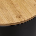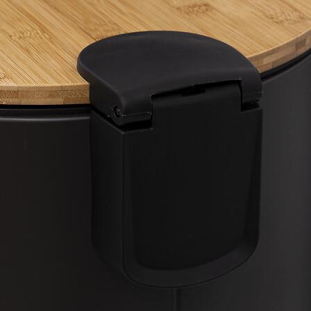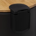 Stylowy pojemnik na śmieci został wykonany z metalowego korpusu, bambusowej pokrywy i polipropylenowego wkładu, dzięki czemu jest zarówno atrakcyjny, jak i funkcjonalny. Stopka z boku pozwala na łatwe otwieranie go stopą - nie trzeba dotykać go rękami. Dodatkowo posiada funkcję miękkiego zamykania, więc nie musisz się martwić o głośne trzaskanie!