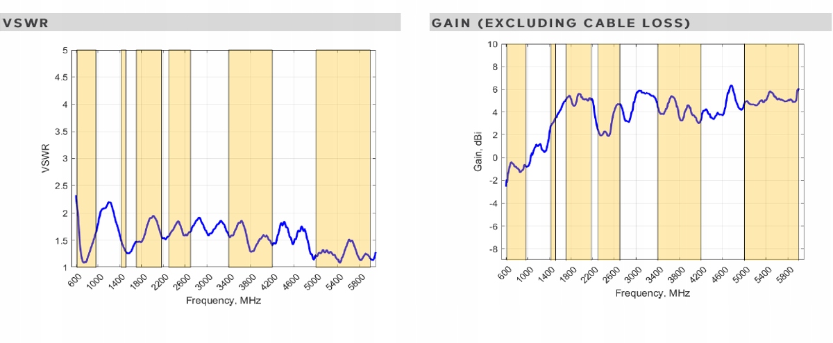 MIMO-4-4 zapewnia doskonałą wydajność we wszystkich pasmach z VSWR <2:1.