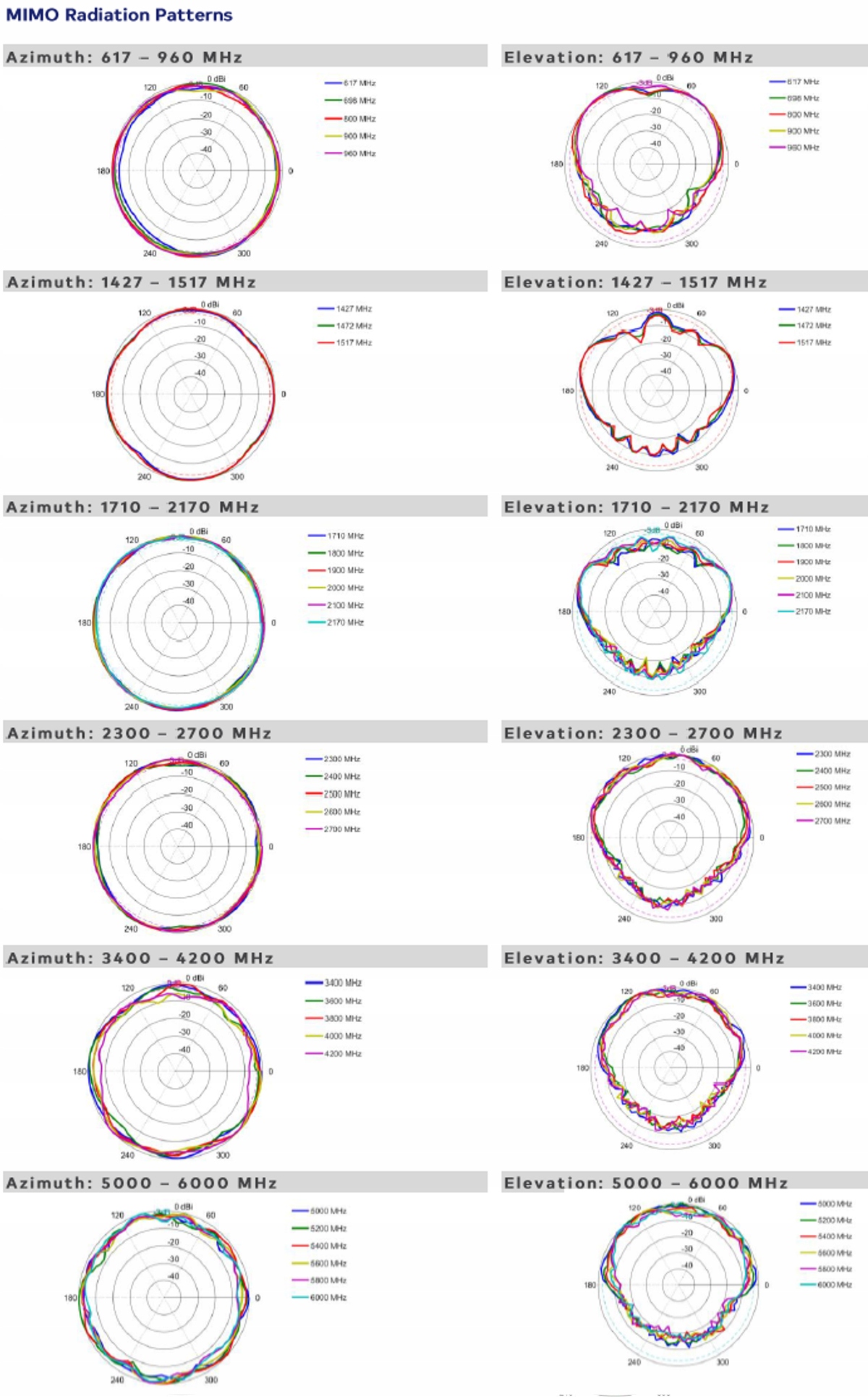 6 dBi to szczytowe wzmocnienie we wszystkich pasmach od 617 do 6000 MHz