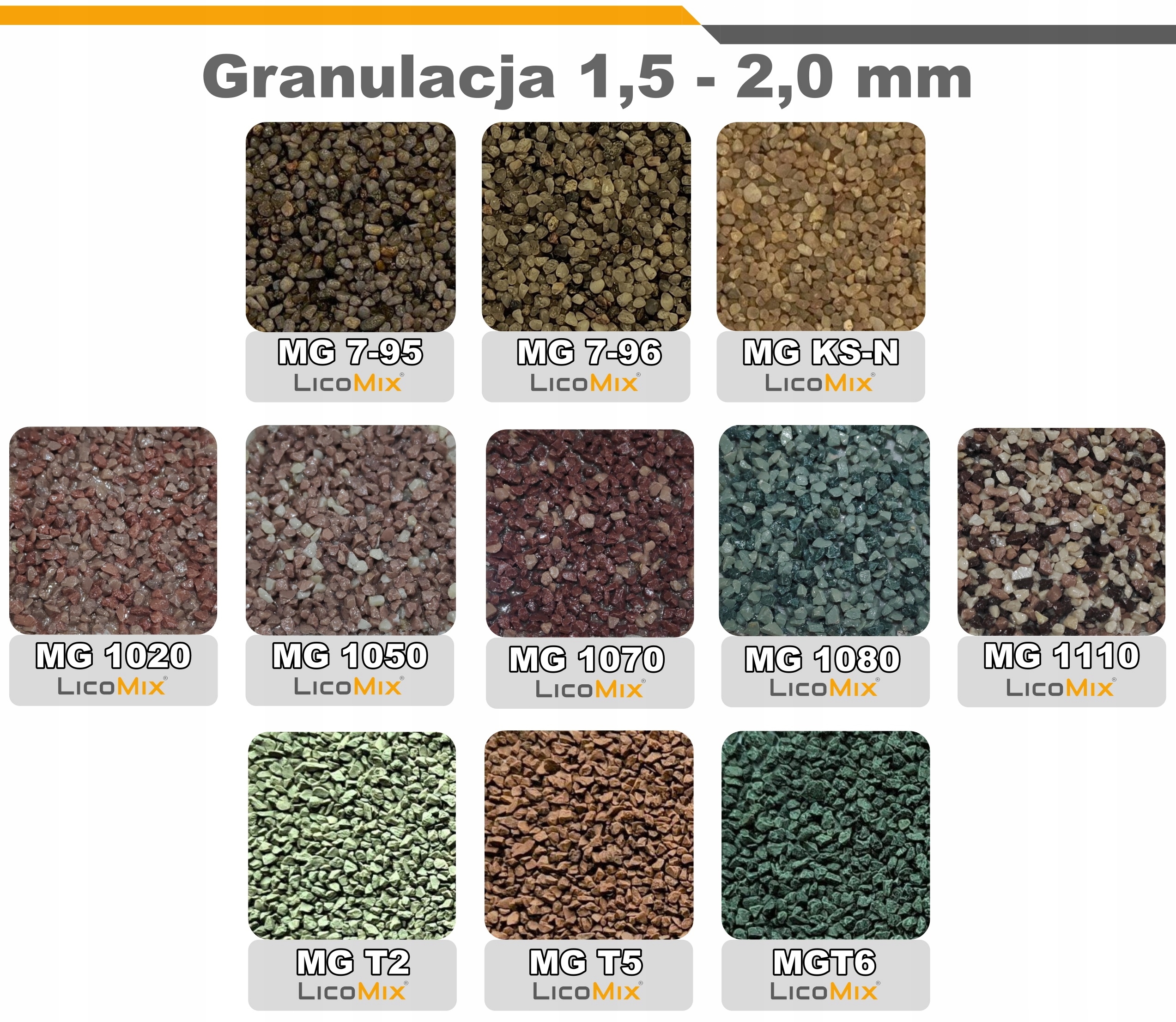 Na wzorniku niektóre kolory mogą mieć widoczną domieszkę brokatu — w oferowanych tynkach brokat nie jest dodawany. Prosimy o sugerowanie się wyłącznie kolorem kruszywa.