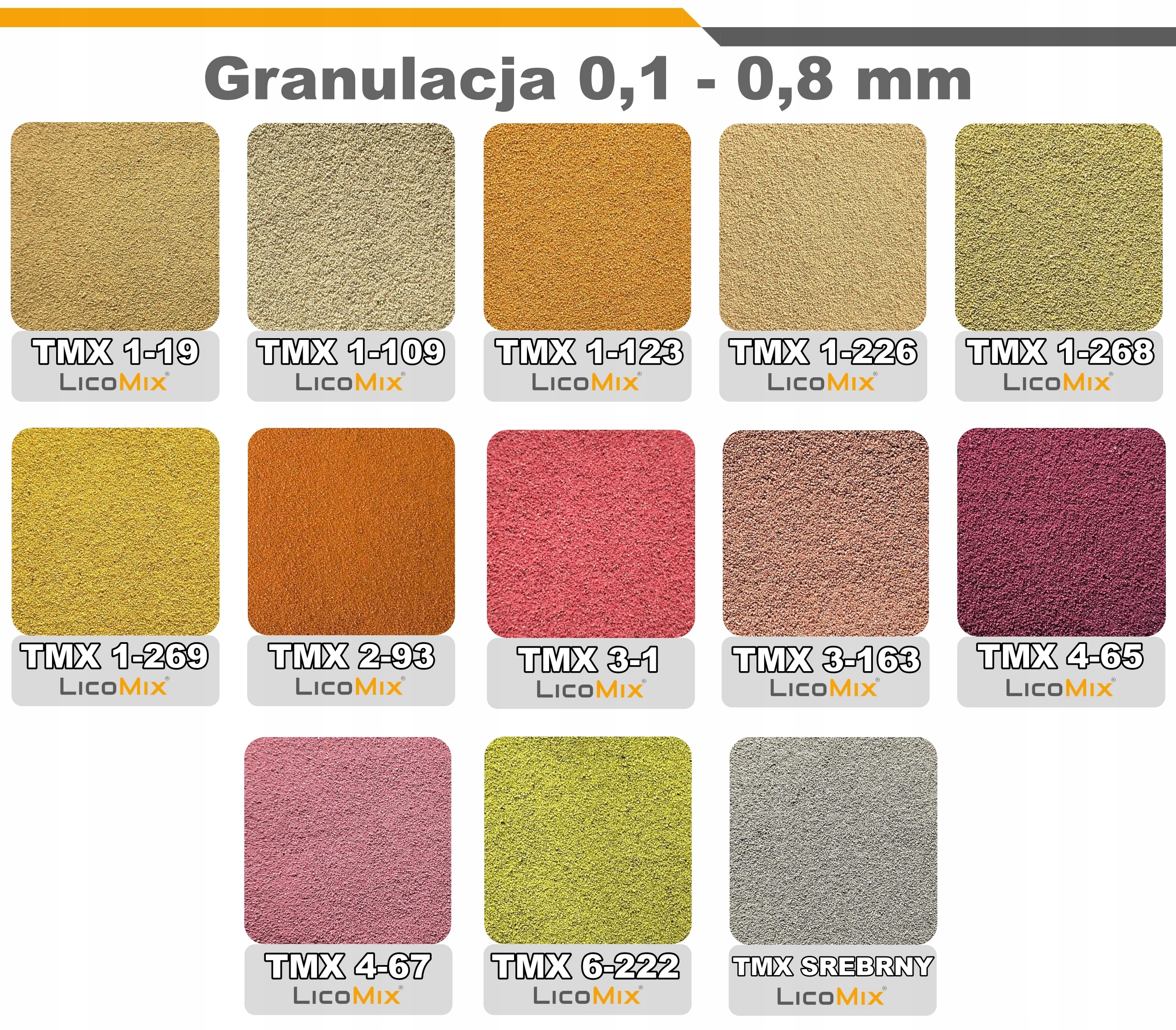 ☑️ Oferta dotyczy promocyjnej palety kolorystycznej tynków mozaikowych Lico Mix. Tynk dostępny jest w różnych granulacjach. Mozaikę sprzedajemy w wiaderkach 7,5kg, 15kg oraz 25kg na naszych aukcjach Allegro.