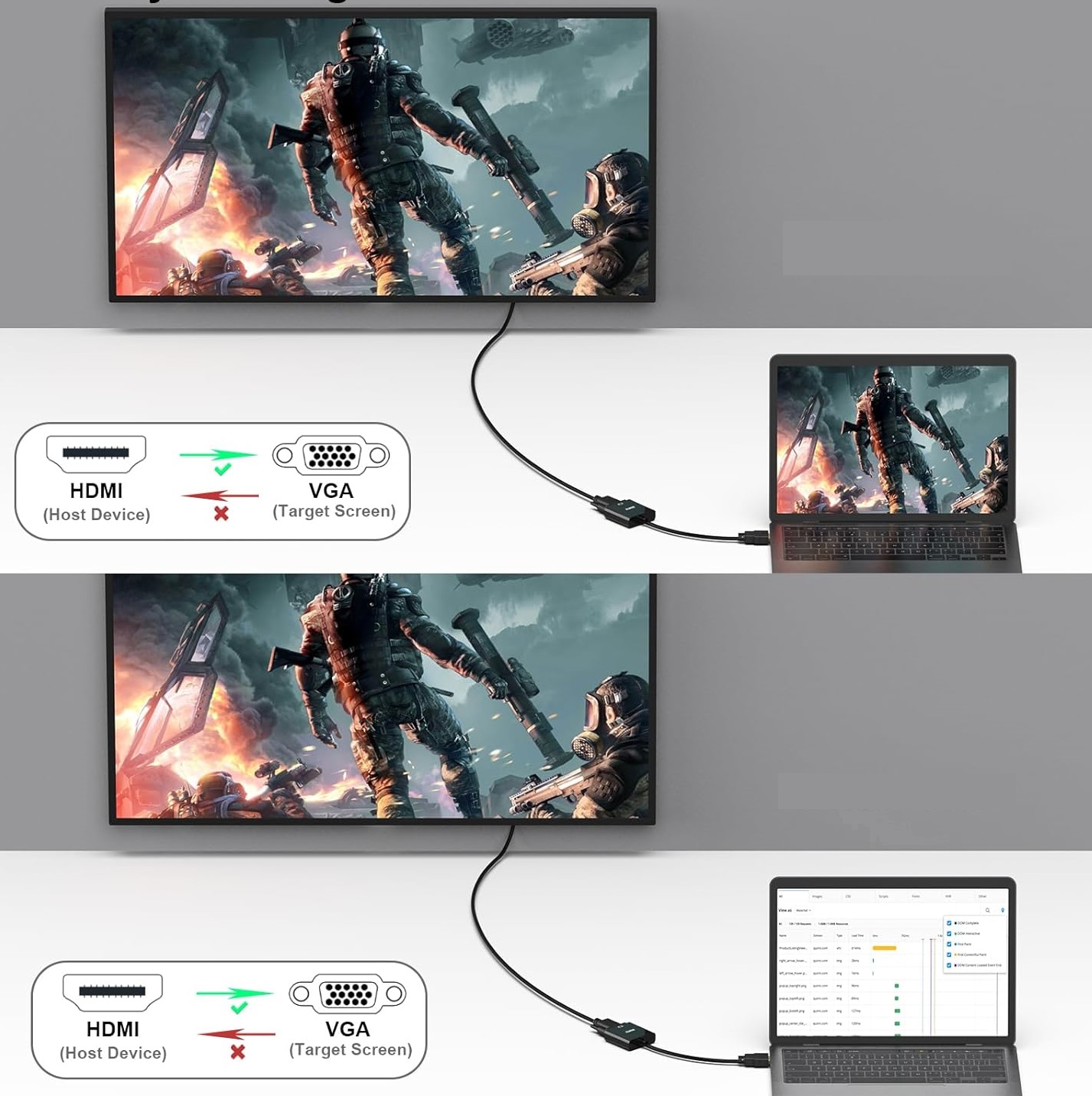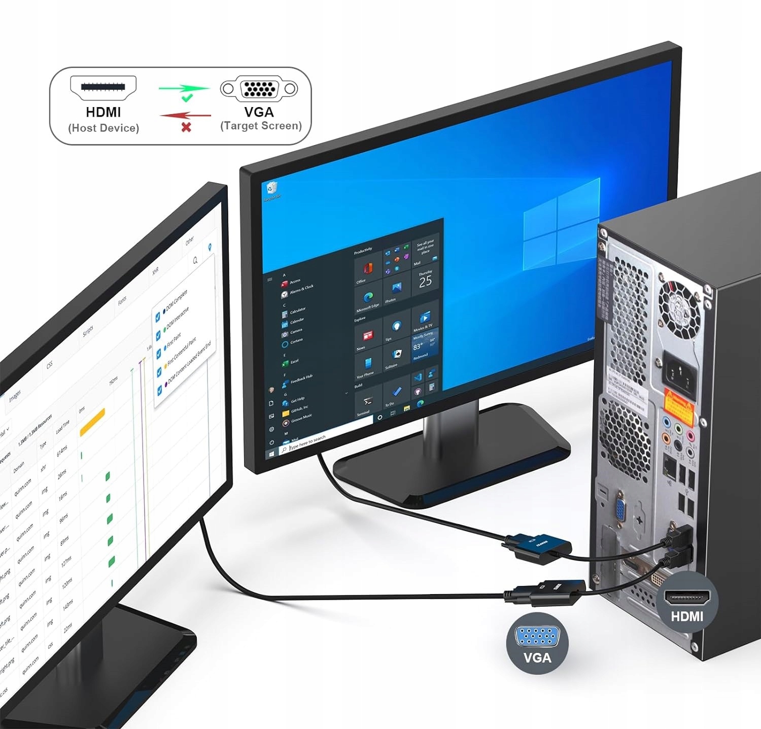 Idealne rozwiązanie do podłączenia nowoczesnych urządzeń wyposażonych w port HDMI do starszych monitorów, projektorów lub telewizorów z wejściem VGA.