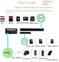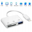 Oferowany adapter wyróżnia możliwość podłączenia nie tylko kart pamięci (zarówno dużych jak i micro-SD), a także pamięci USB.