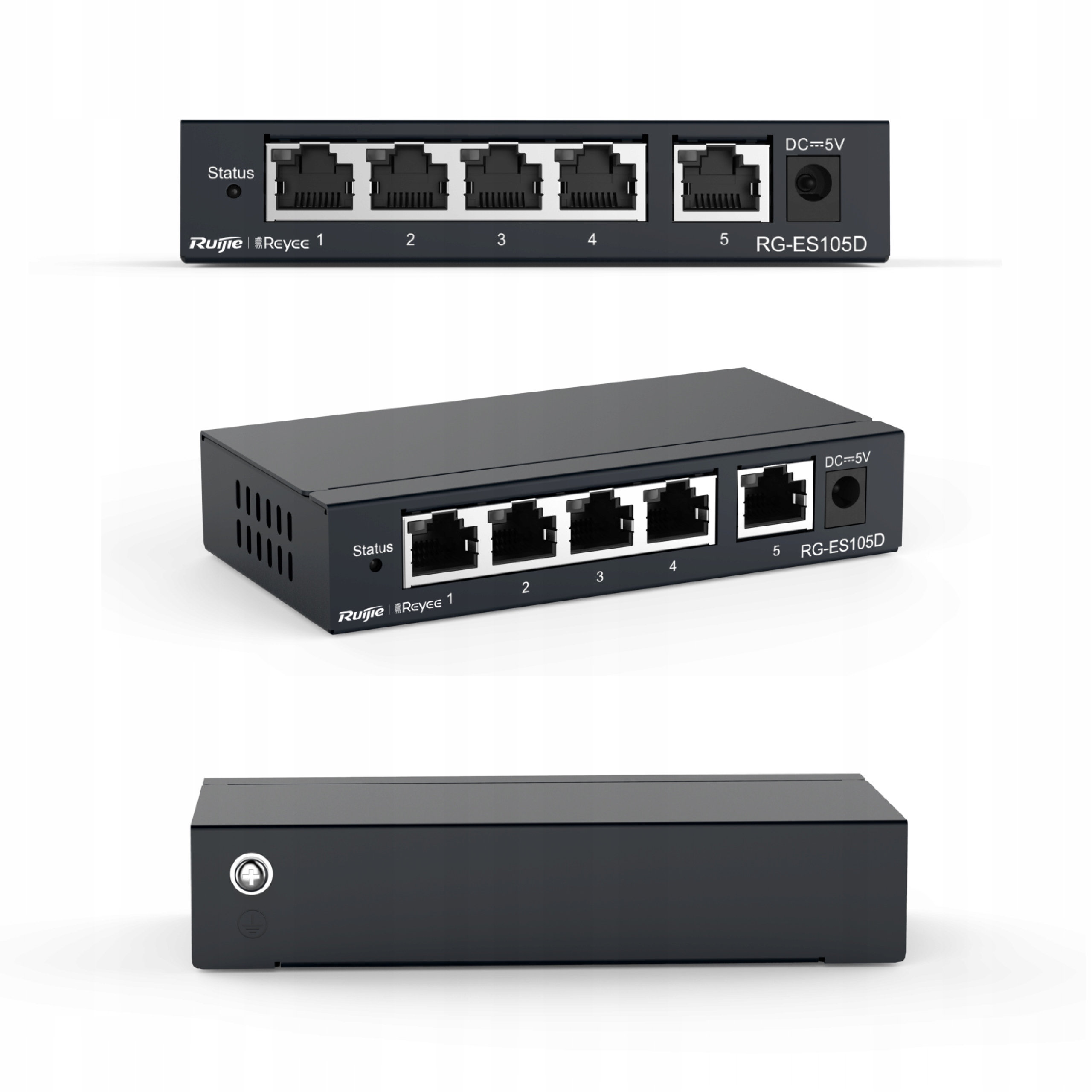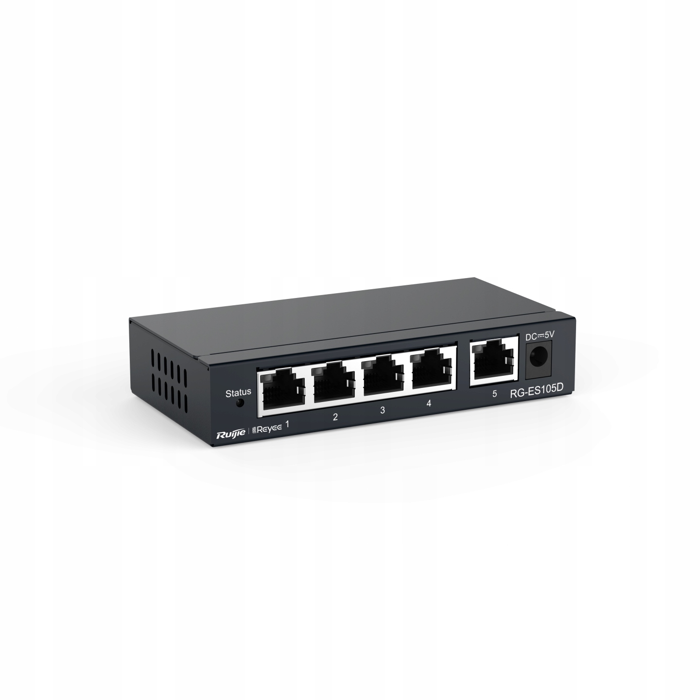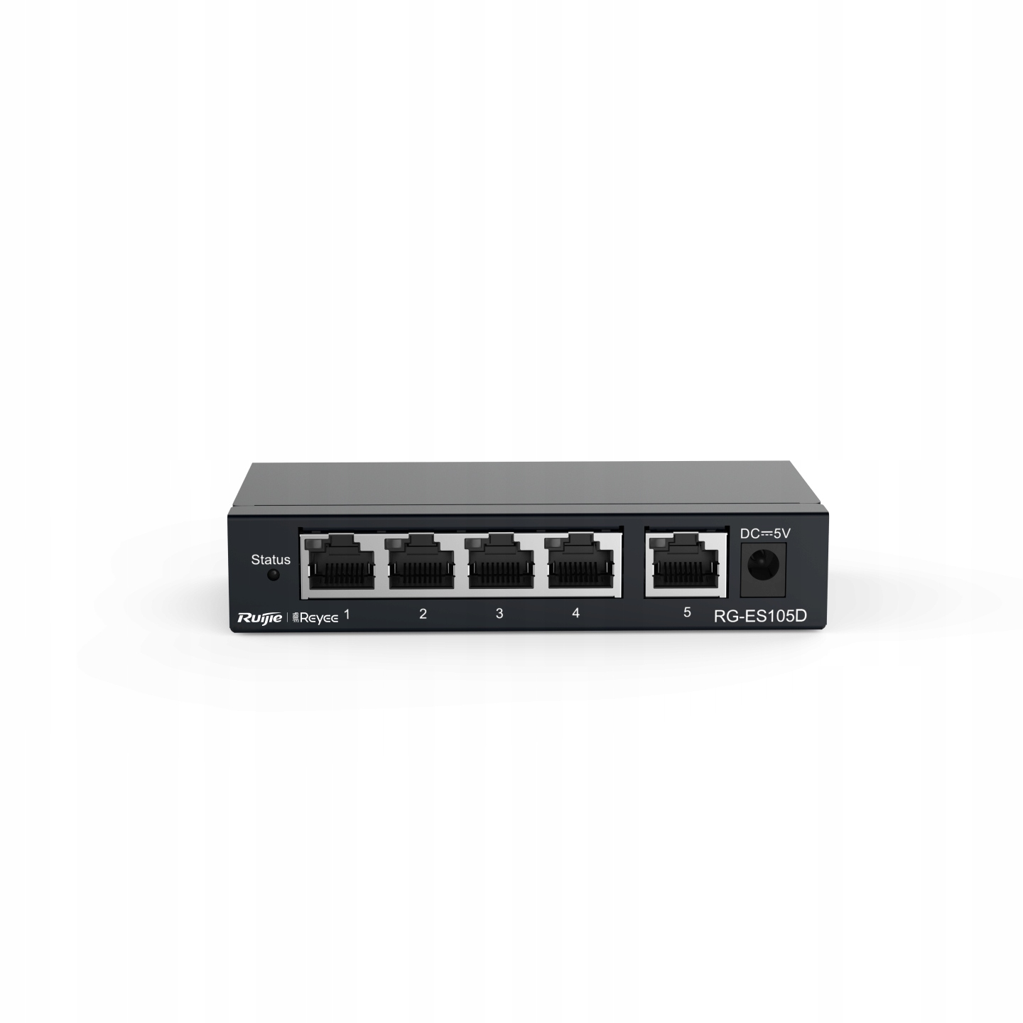Przełącznik RG-ES105D jest łatwy w instalacji i obsłudze. Posiada kompaktową solidnie wykonaną obudowę oraz diody LED informujące o statusie połączenia i aktywności na każdym porcie, co ułatwia monitorowanie pracy urządzenia.