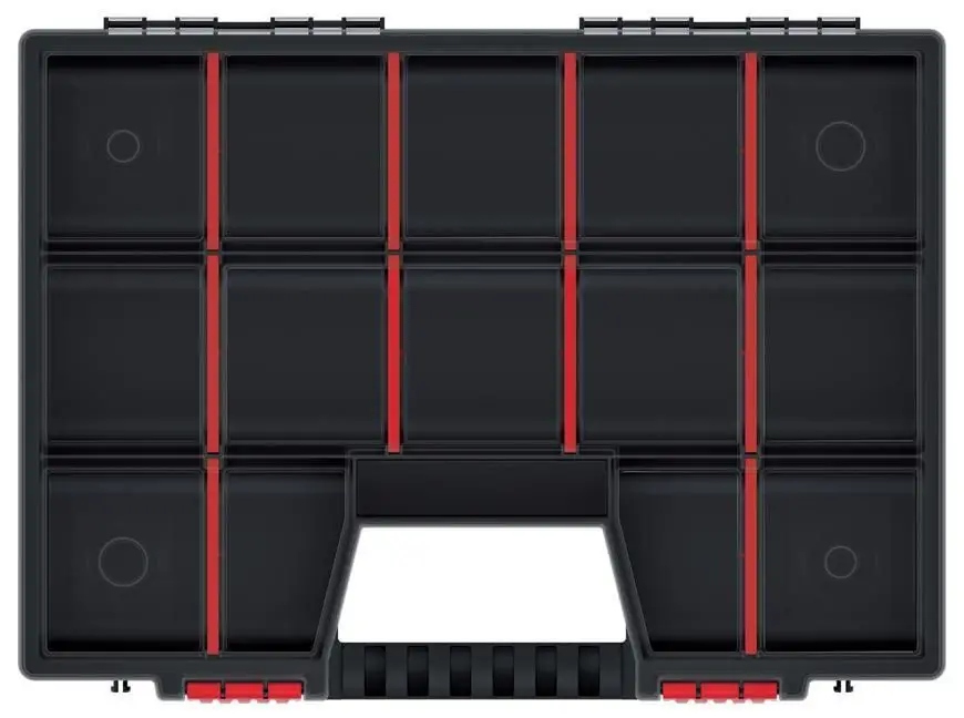 Органайзер NOR16 состоит из пяти основных отсеков. Четыре из них имеют 10 съемных отсеки. Максимум можно получить 15 камер размером 7х8 см и глубиной 6 см.