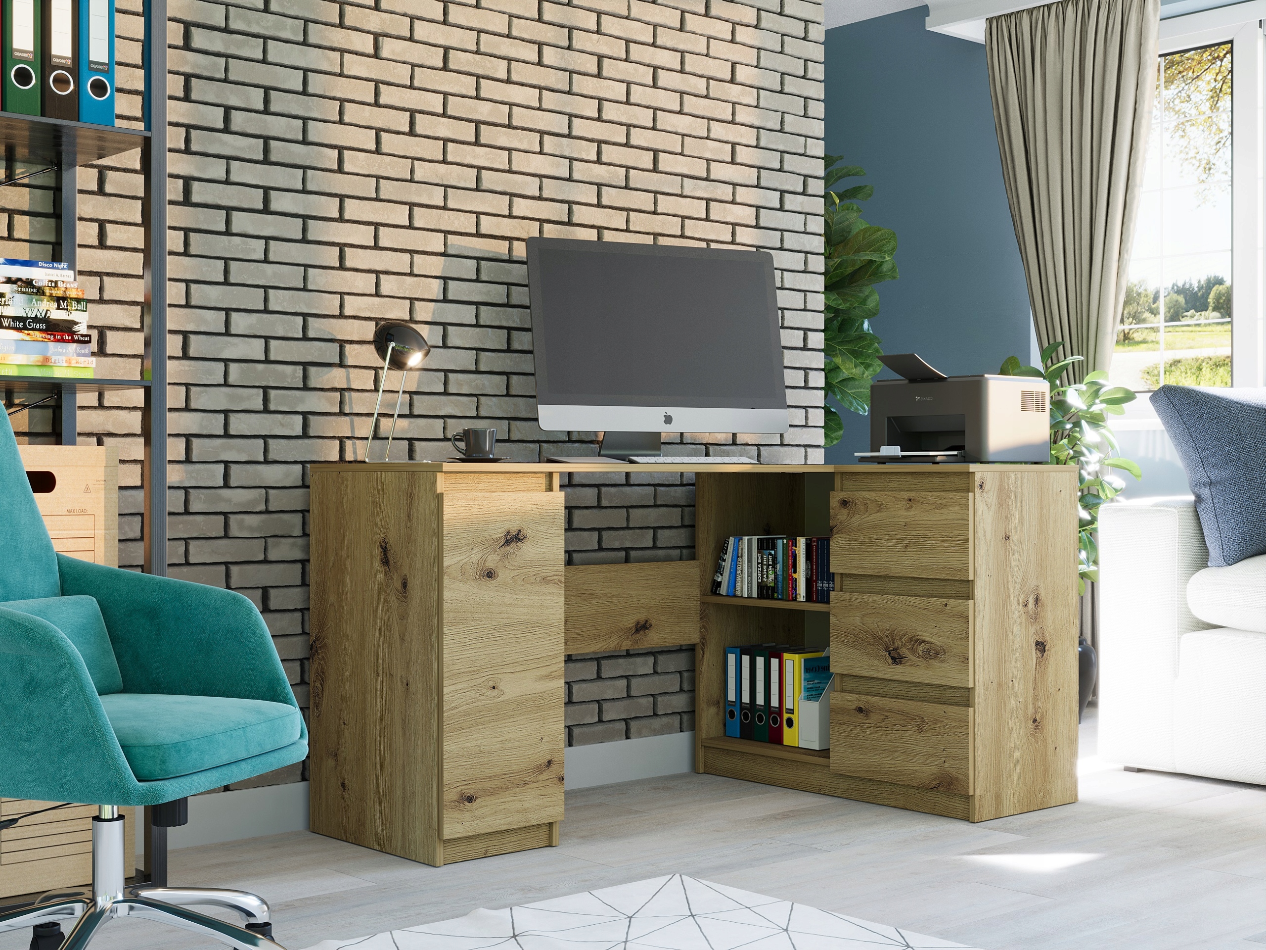 Stylowe biurko z kolekcji MODERN, stworzony dla ludzi, którzy cenią sobie nowoczesny styl i elegancję. Odnowi wnętrze każdej pracowni, biura czy pokoju młodzieżowego. Konstrukcja jest minimalistyczna, ale solidna i trwała. Ergonomiczne wymiary zapewniają swobodne umeblowanie pomieszczenia.