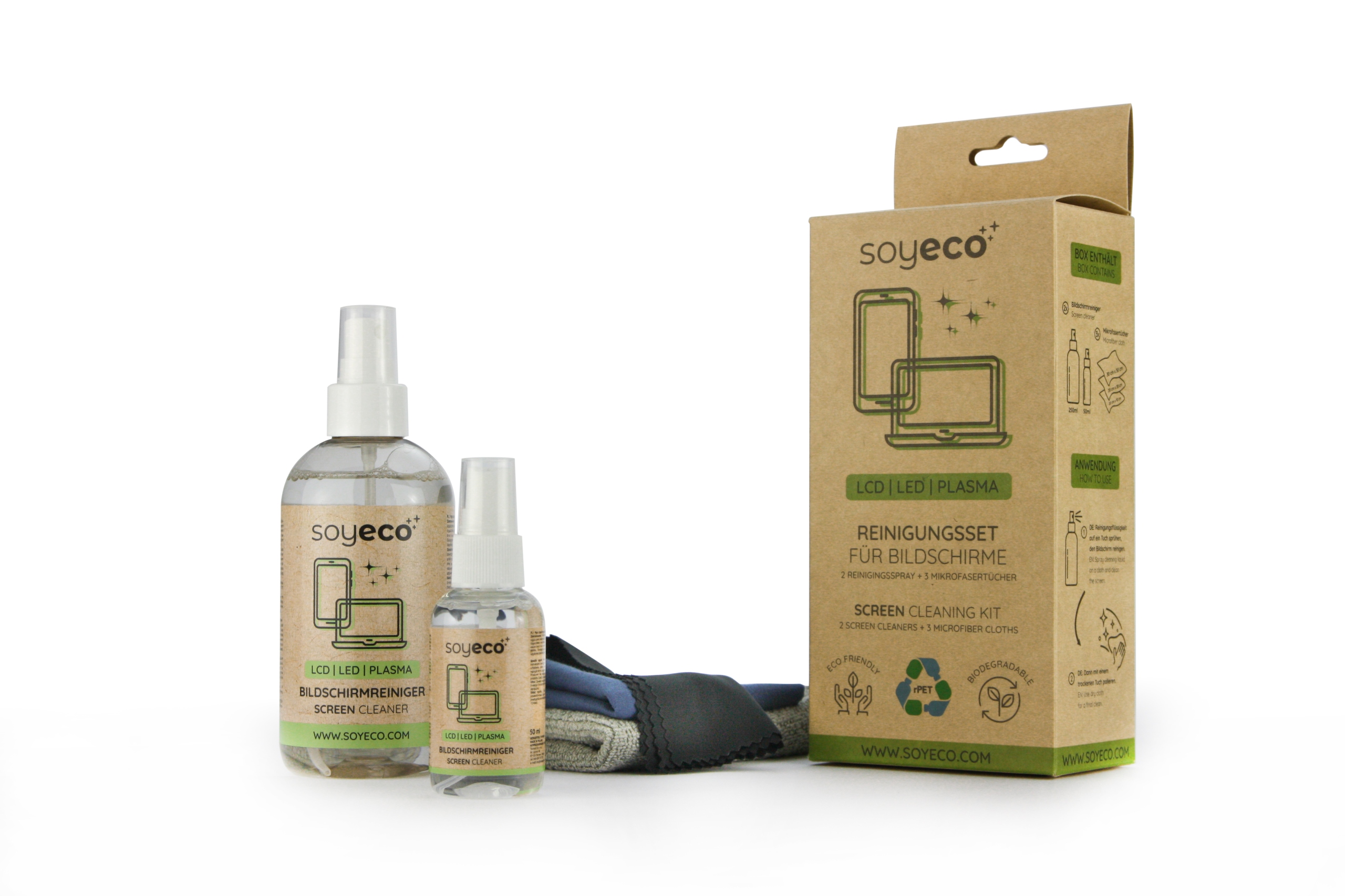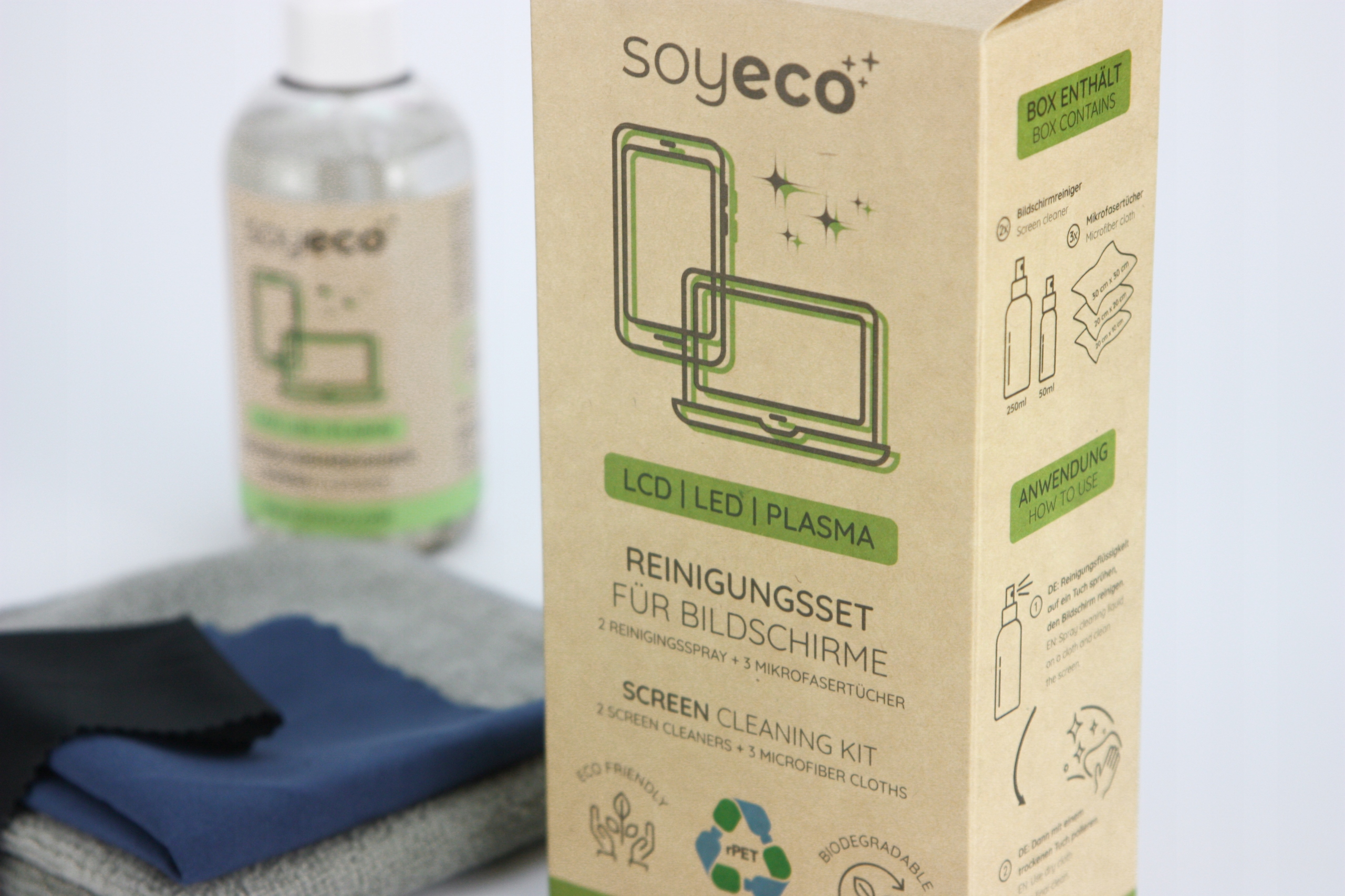 Płyn do czyszczenia nie zawiera ostrych substancji chemicznych, które mogłyby uszkodzić powłokę ekranu. Wysokiej jakości, bardzo chłonna i wytrzymała ściereczka z mikrofibry nadaje się szczególnie do czyszczenia delikatnych płaskich ekranów i chroni Twoje urządzenia.