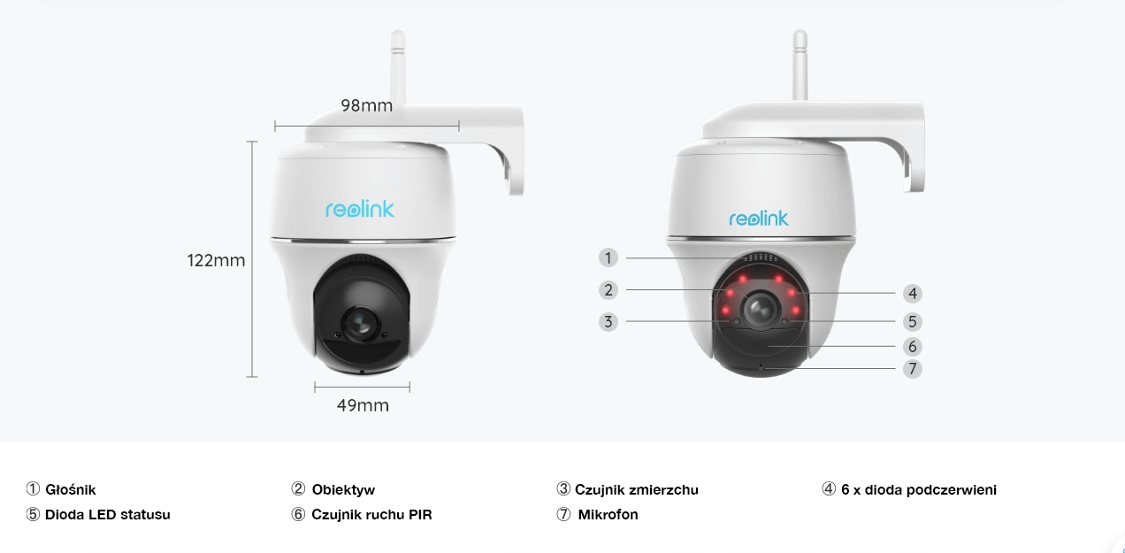 ✅ Czujnik ruchu podczerwieni - technologia podczerwieni w kamerze Reolink Argus PT 2K poprawia czułość wykrywanego ruchu, jednocześnie eliminując fałszywe alarmy, dodatkowo kamera posiada funkcję wykrywania postaci i pojazdów.