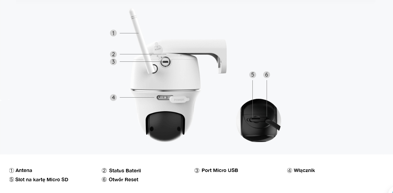 ✅ Obracana głowica - zdalnie obracaj głowicą w pionie i poziomie