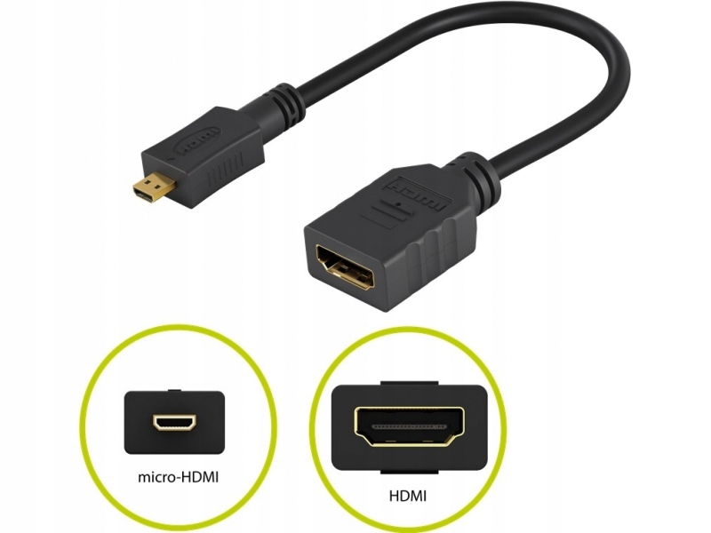 Mikro adapter HDMI™ umożliwia bezpośrednie podłączenie i odtwarzanie Raspberry Pi, kamery GoPro, tabletu, takiego jak Microsoft Surface, a także przesyłanie obrazu z laptopa do telewizora.