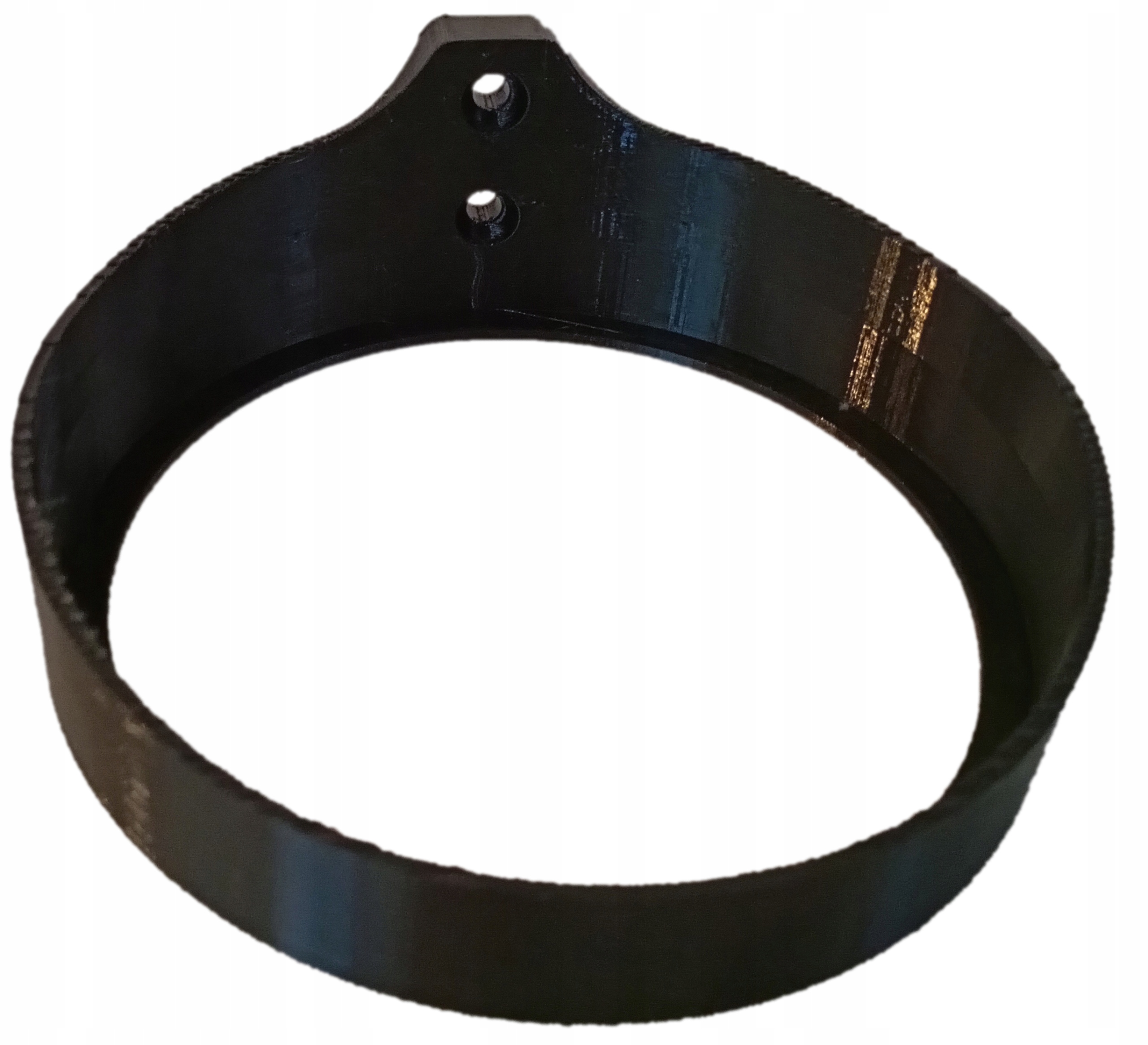 Uchwyt został wykonany metodą druku 3D z materiału PET-G. Mocowany jest na dwóch kołkach montażowych 6x30mm, które są w zestawie. Składa się z jednego elementu oraz został zaprojektowany w taki sposób aby był idealnie dopasowany do routera i sztywno trzymał urządzenie. Średnica otworu na wkręt 5mm.Średnica wewnętrzna wieszaka 115mm