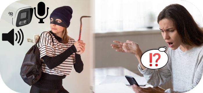 Kamera posiada wbudowany głośnik oraz mikrofon. Dzięki zastosowaniu wydajnego procesora najnowszej technologii mamy możliwość zdalnej dwustronnej komunikacji. Z poziomu aplikacji, możemy za pomocą głośnika w kamerze wysyłać komunikaty głosowe, a także dzięki zastosowaniu bardzo czułego mikrofonu słyszeć co dzieje się wokół kamery.