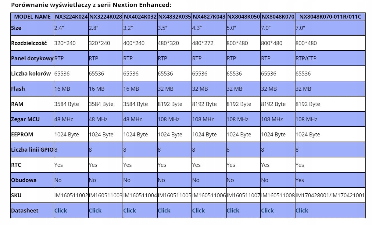 ⭐ Wyświetlacze Nextion są podzielone na trzy grupy pod względem zaawansowania, możliwości sprzętowych oraz mocy obliczeniowej.