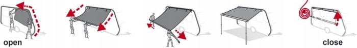 Nogi są wewnątrz zwiniętej markizy, łatwo rozkładane teleskopowo