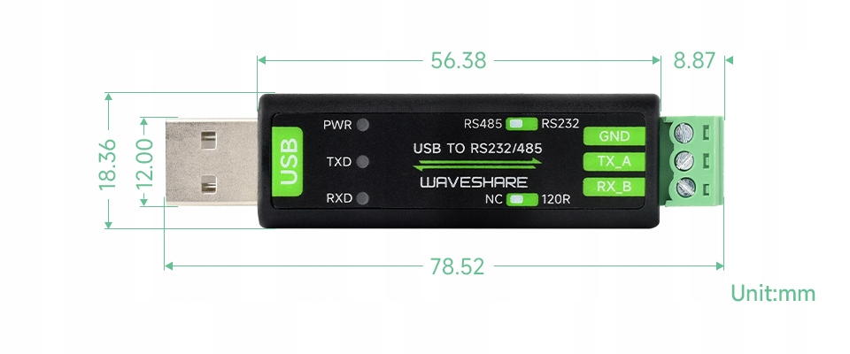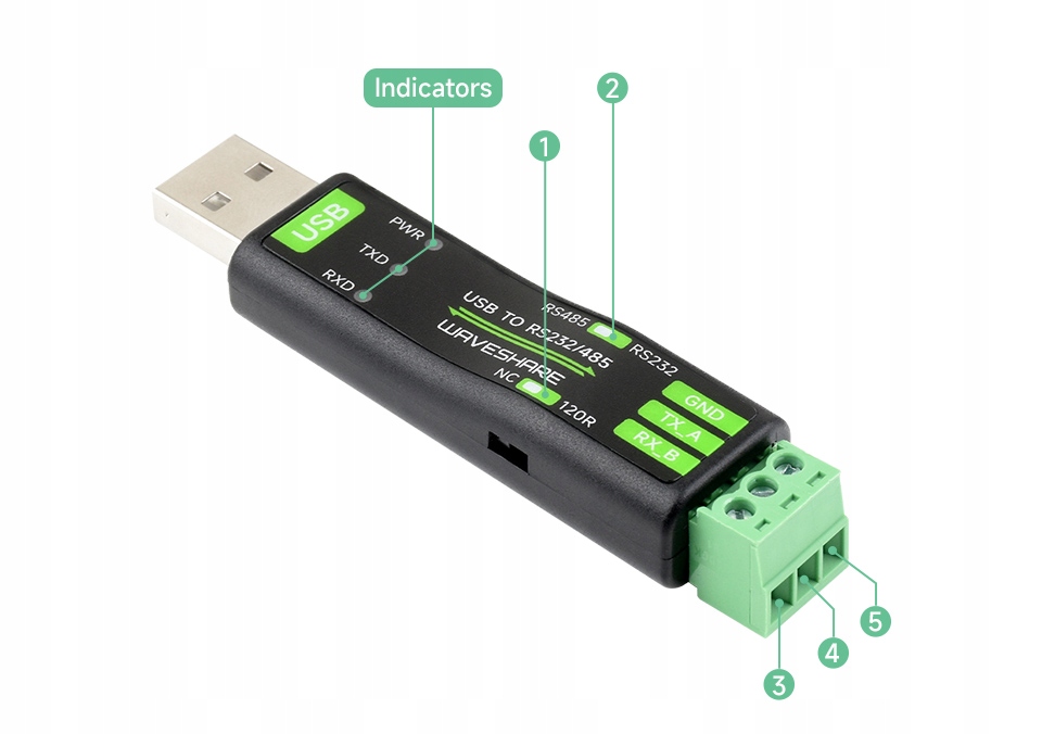 Dodatkowe informacje na stronie WIKI: www.waveshare.com/wiki/USB_TO_RS232/485