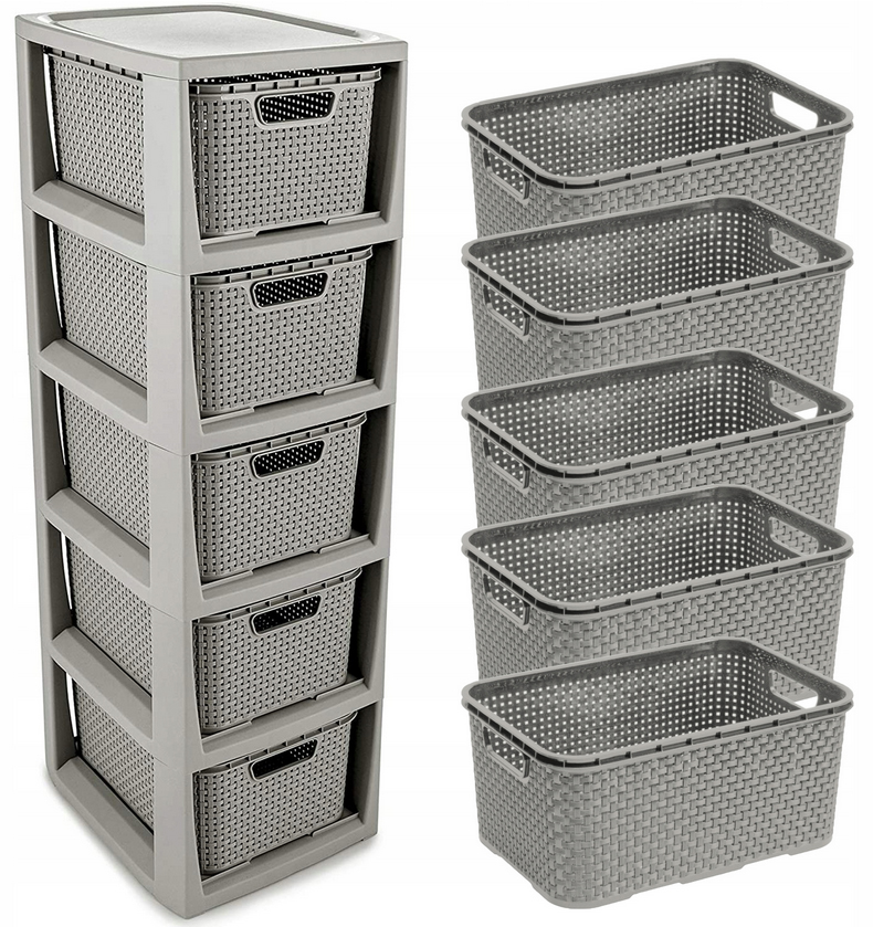 ✅ Pięć wyjmowanych koszyków w stylu Rattan z wygodnymi uchwytami