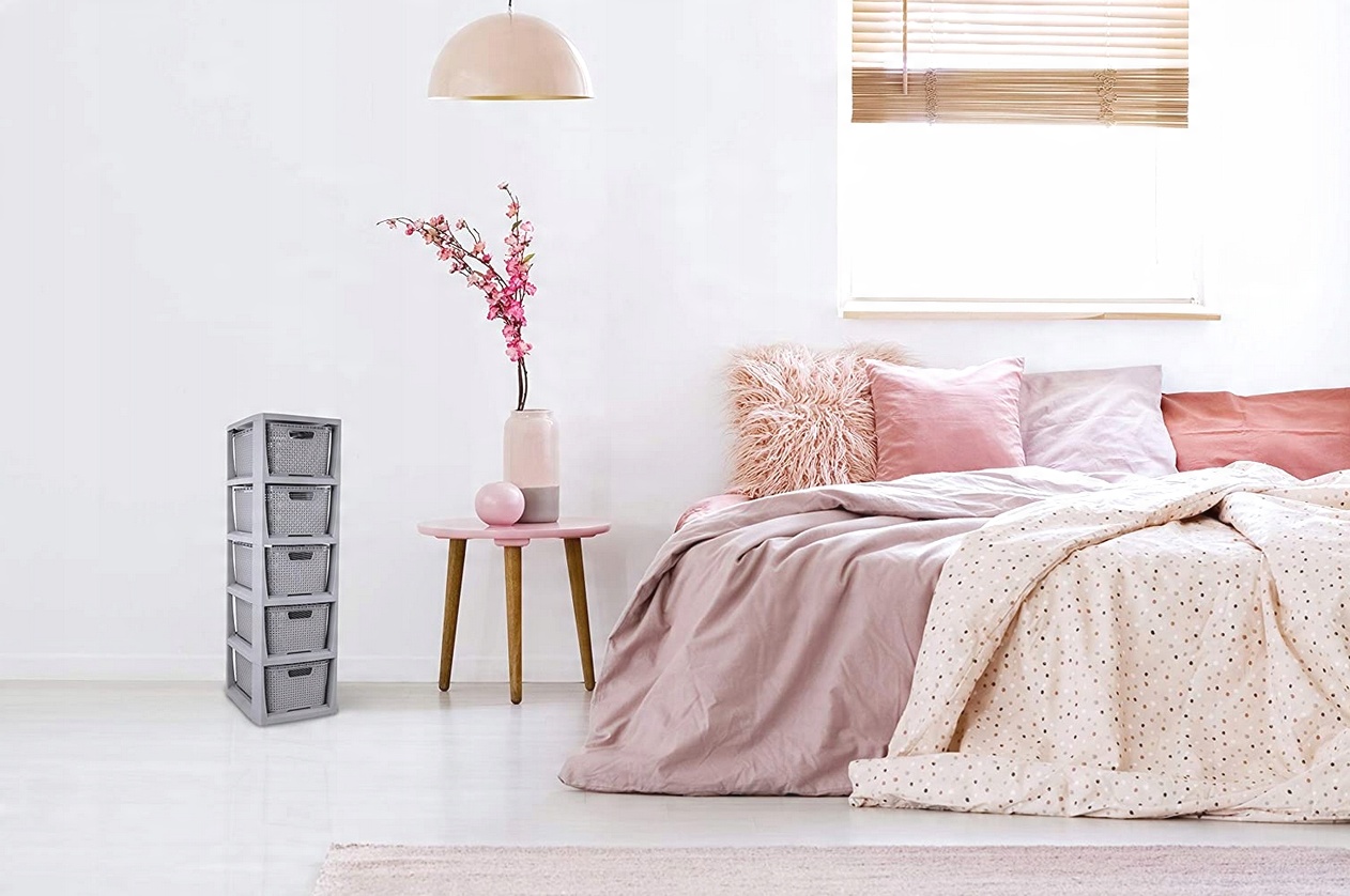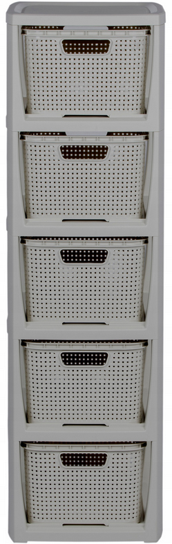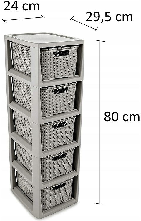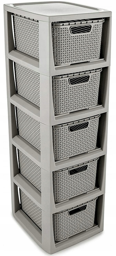 Pięcioczęściowy regał Rattan jest bardzo dobrym rozwiązaniem do przechowywania w małych przestrzeniach. Wykonany bardzo estetycznie, z wysokiej jakości, bezpiecznego materiału (wolnego od ftalanów i bpa) jest idealny do takich pomieszczeń jak łazienka, garderoba, dziecięcy pokój czy domowe biuro. Produkt polski.