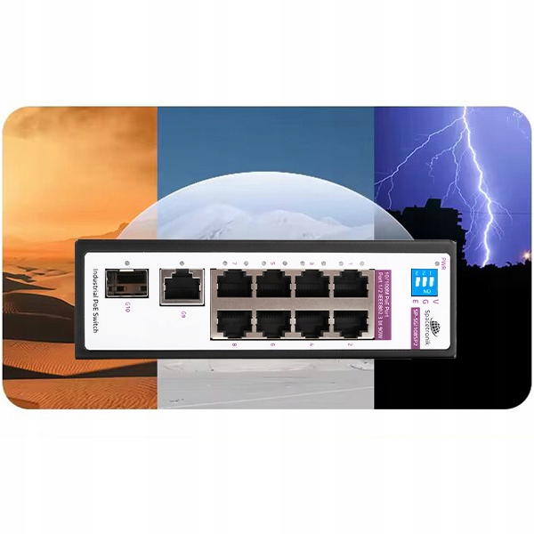 SWITCH przemysłowy PoE 8 portów w tym 2 porty 90W + Uplink + SFP zasób 360W