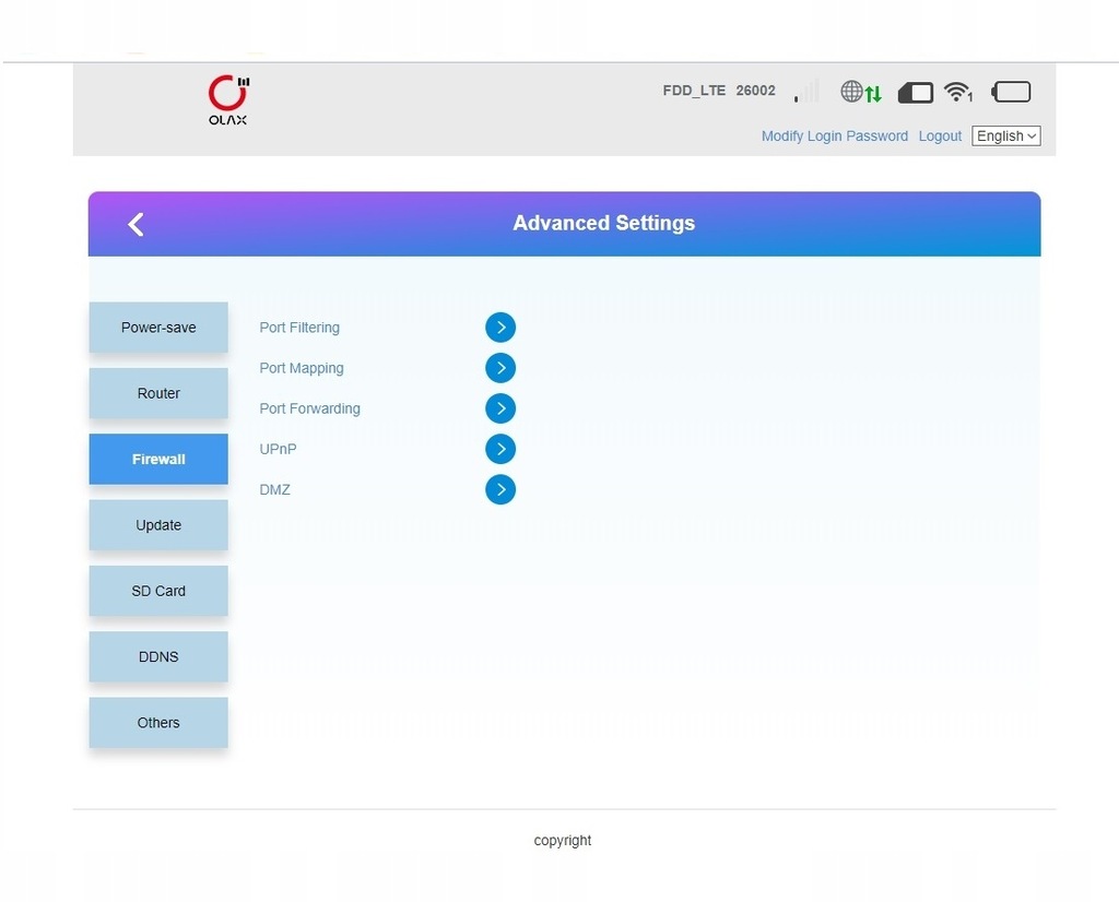 Router jest obsługiwany i konfigurowany przez przeglądarkę internetową pod adresem 192.168.0.1. Obsługa strony startowej w języku angielskim. Możliwość obsługi urządzenia za pośrednictwem sieci WiFi lub aplikacji mobilnej ZTE Link.