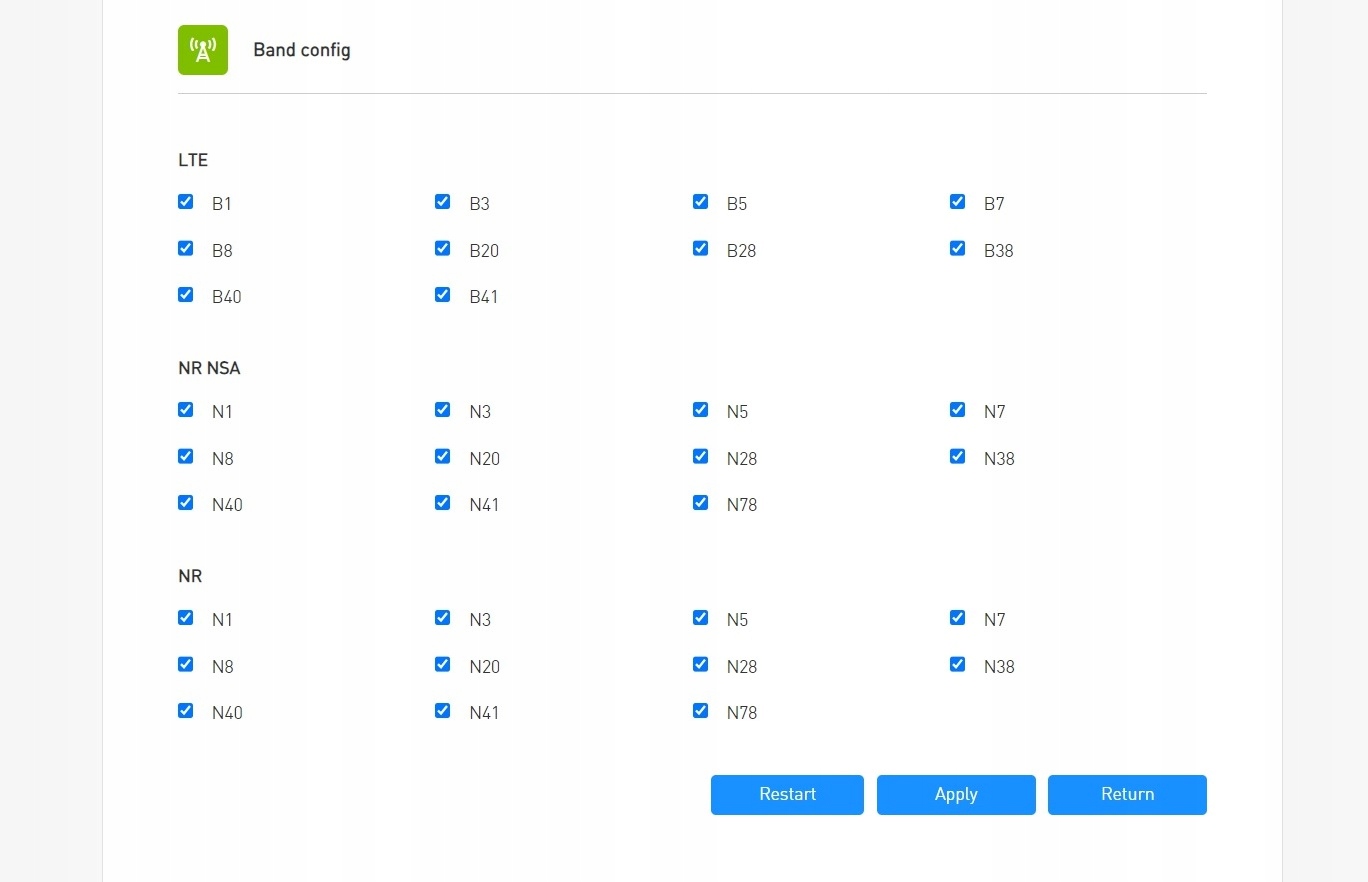 Частота 5G: N1/3/5/7/8/20/28/38/40/41/78