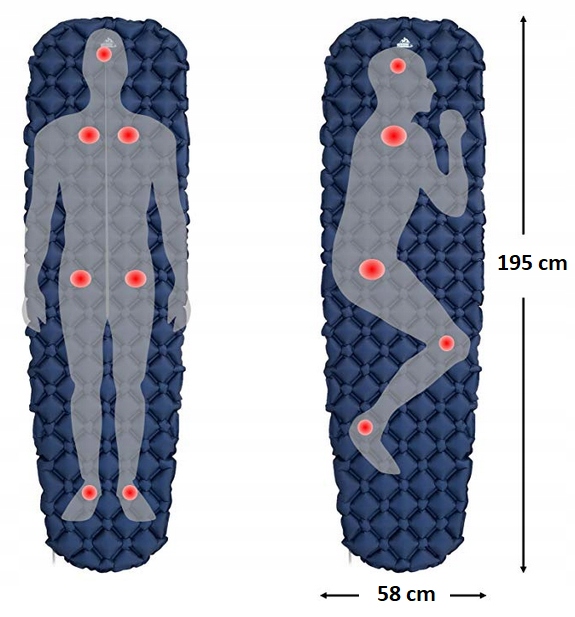 UWAGA: MATERAC PRZED NAPOMPOWANIEM MA WIĘKSZY WYMIAR, PO NAPOMPOWANIU WYMIAR JAK W SPECYFIKACJI