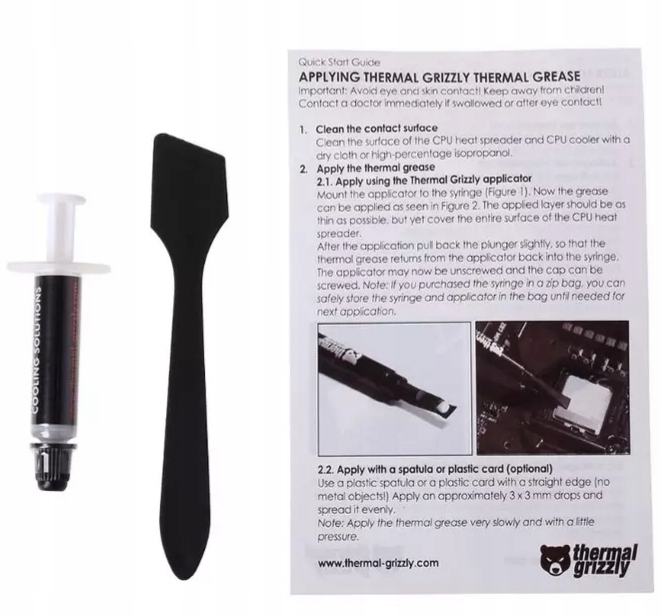 Pasta Thermal Grizzly jest uznawana za jedną z najlepszych past na rynku. Produkty firmy Thermal Grizzly zawsze stają na wysokim poziomie za przystępną cenę. Charakteryzuje się doskonałymi parametrami przewodnictwa ciepła. W swoim składzie pasta ma tlenek cynku oraz aluminium dzięki czemu nie wysycha nawet w temperaturach zbliżonych do 80 stopni Celsjusza.