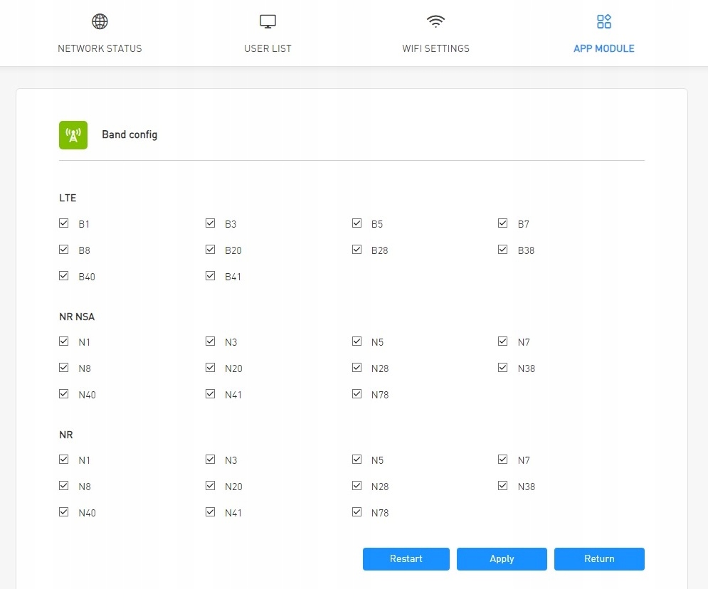 Częstotliwości 5G: N1/3/5/7/8/20/28/38/40/41/78