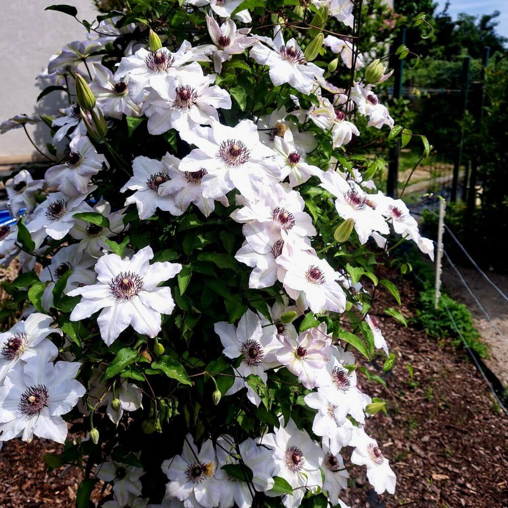 Kwitnienie: Odmiana bardzo pięknie i obficie kwitnąca. W okresie od maja do czerwca pojawiają się bardzo liczne, duże (od 12-15 cm), białe kwiaty o gwieździstym kształcie. Kwiaty są czasami ozdobione zieloną pręgą. Drugi raz clematis ten kwitnie w okolicach sierpnia. W okresie wegetacji zalecane jest mocne nawadnianie ziemi. Należy pamiętać, że kwiaty pojawiają się na zeszłorocznych pędach dlatego też lepiej ich nie podcinać.