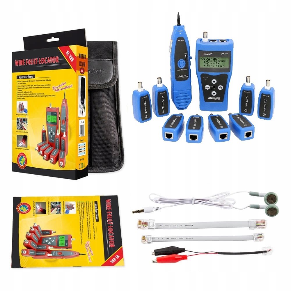 - Sprawdzanie usterek: Śledzenie i sprawdzanie 5E, 6E, kabla podrzędnego, kabla koncentrycznego i linii telefonicznej, obwodu otwartego, zwarcia, przewodu połączeniowego, połączenia odwrotnego lub zakłóceń przesłuchowych.