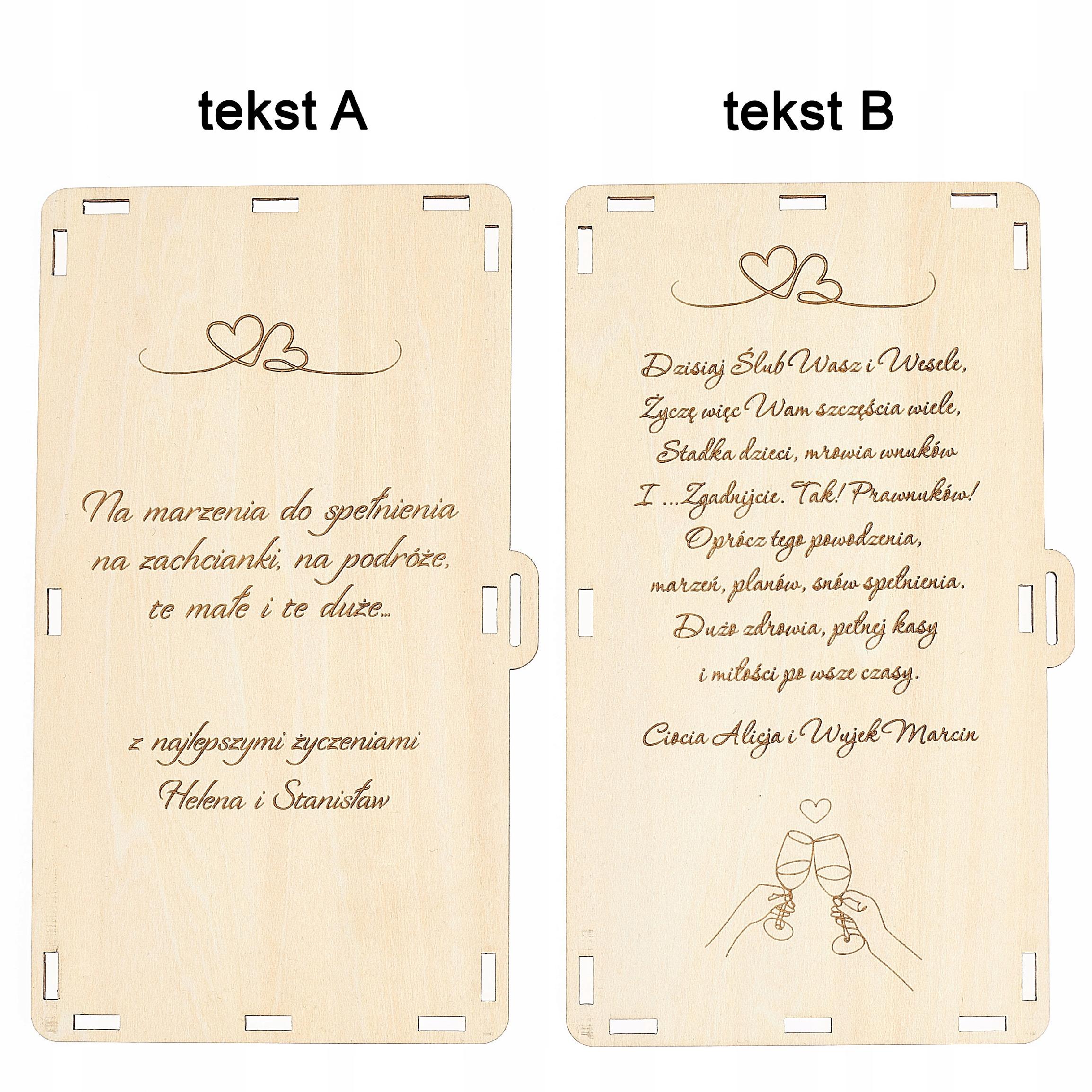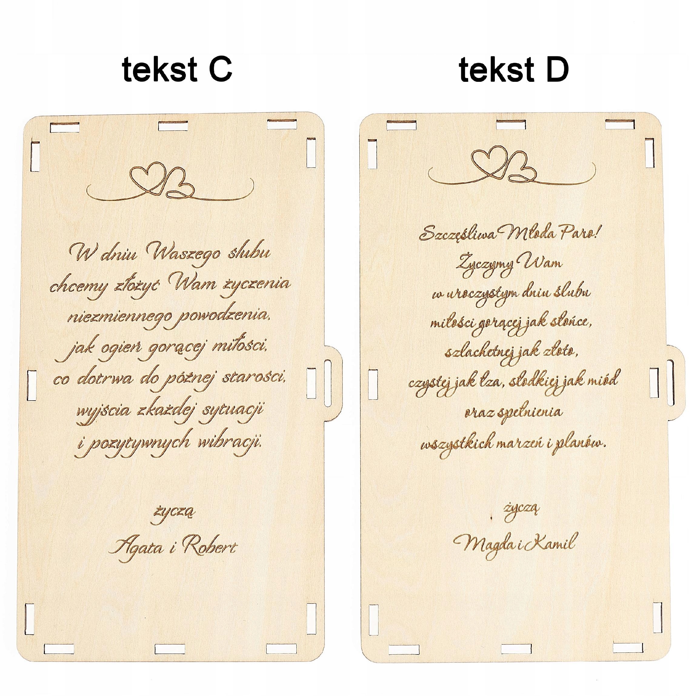 Po dokonaniu zakupu koniecznie prześlij informacje z tekstem personalizacji. Tekst możliwy do zmiany: imiona Pary młodej, data oraz od kogo są życzenia
