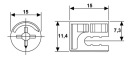 Komplet zawiera mimośrod (element okrągły) służący do zaciśnięcia połączenia oraz trzpień czyli element wkręcany w płytę meblową za pomocą wkrętaka.