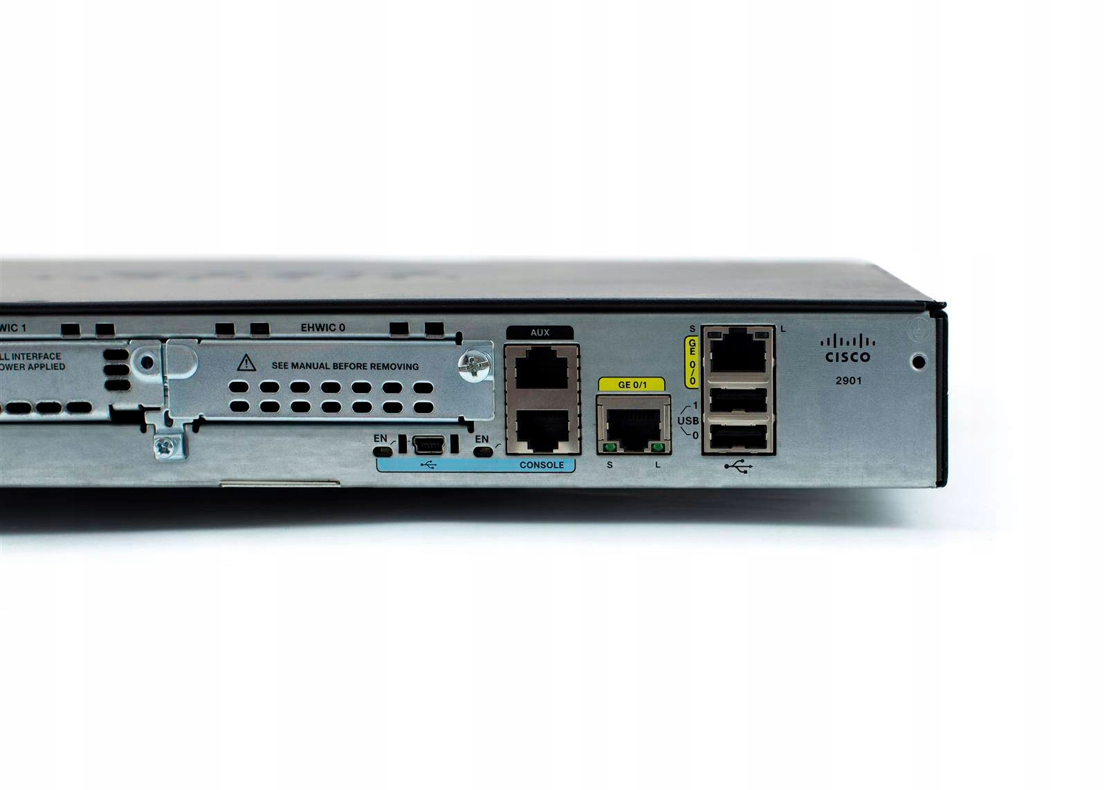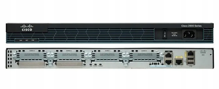 W skład zestawu wchodzą trzy routery do szafy rack Cisco z serii 2900, które są wyposażone w: