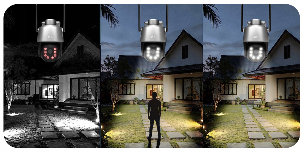 • 3 tryby pracy nocnej – IR, LED oraz tryb SMART przełączający oświetlenie po wykryciu człowieka