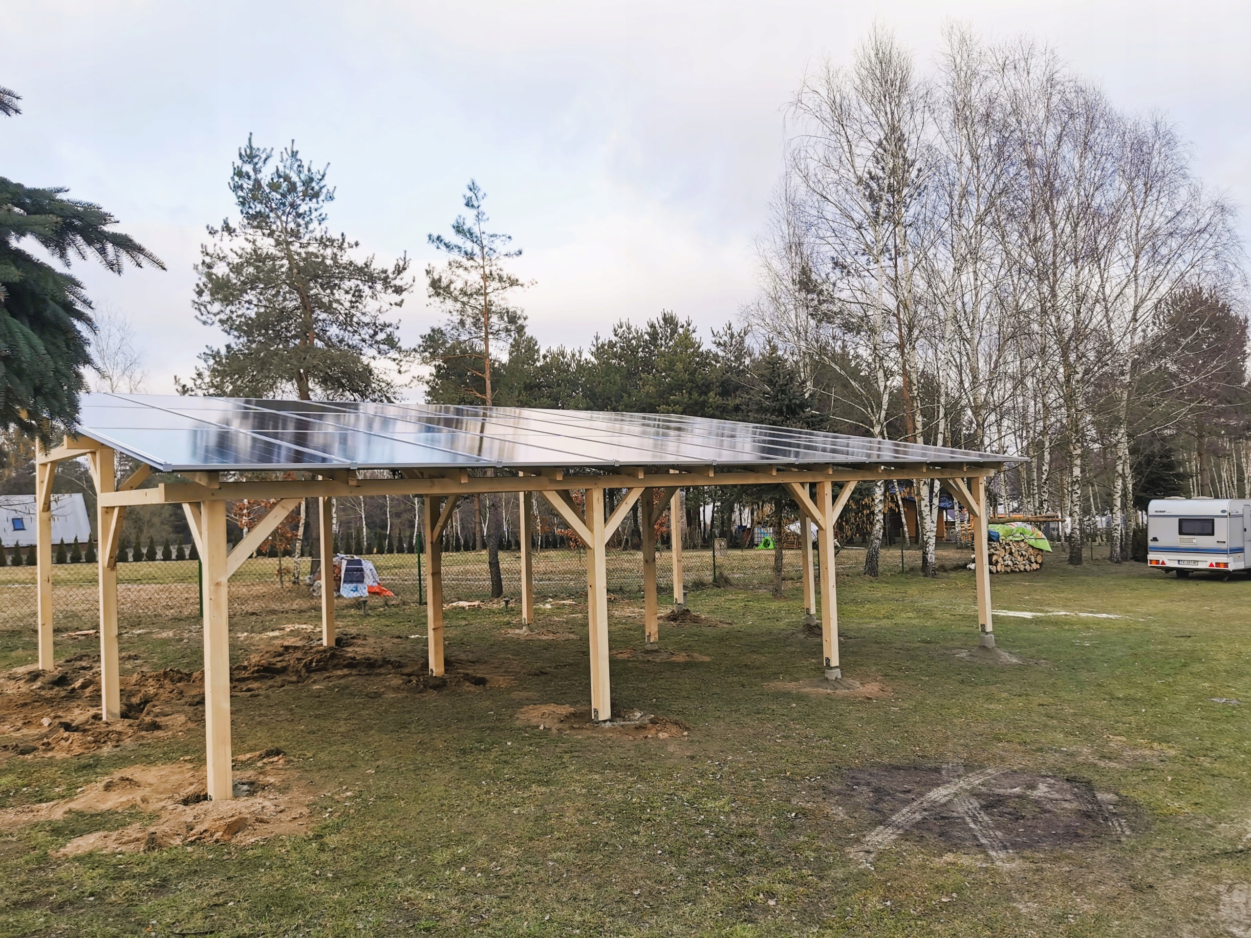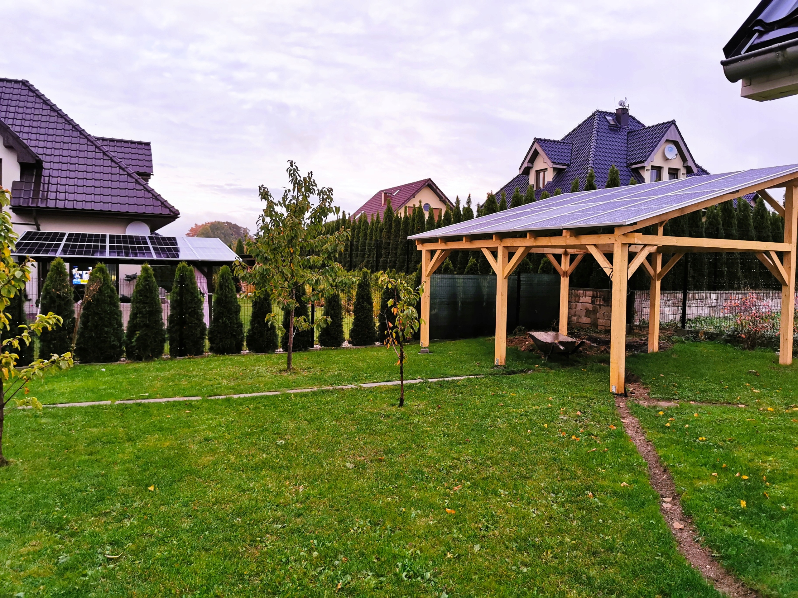 Efektywność bez kompromisów: Panele fotowoltaiczne montowane jako pokrycie dachowe, z dedykowanymi profilami chroniącymi przed przeciekami. Dzięki otwartej konstrukcji panele są przewiewne i chłodzone, co zwiększa ich wydajność w porównaniu do instalacji na dachu, gdzie panele mogą tracić do 20% wydajności latem.