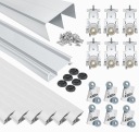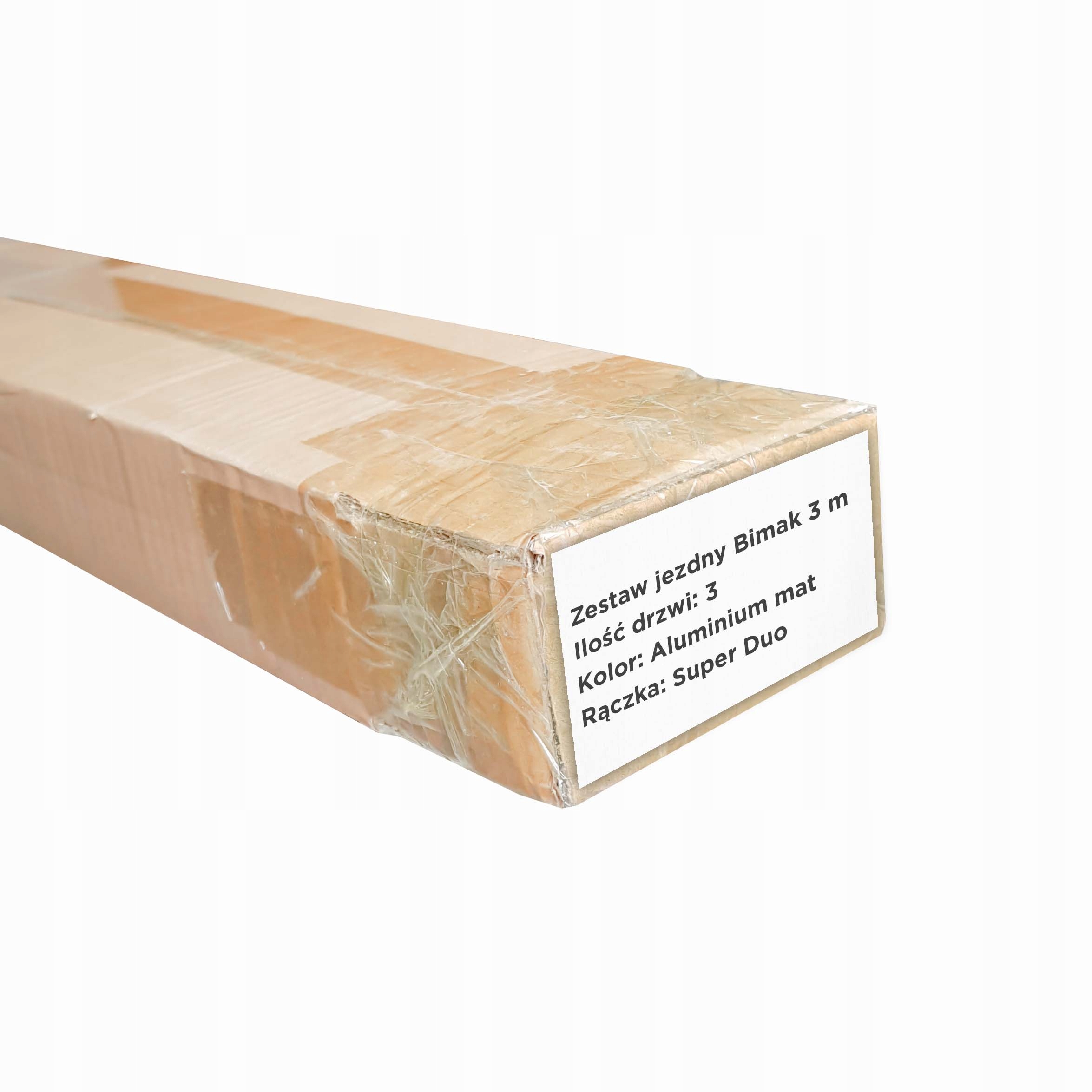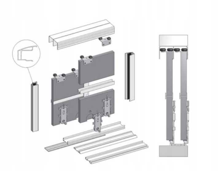 W skład zestawu wchodzą wszystkie profile i okucia które potrzebujesz do skręcenia drzwi przesuwnych. Zestaw jest fabrycznie pakowany w jeden karton. Profile wewnątrz opakowania są zabezpieczone gąbką uniemożliwiając rysowanie się.